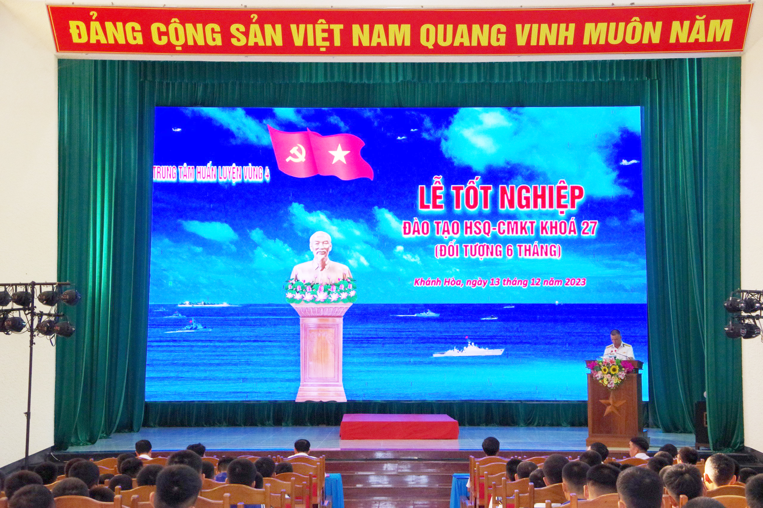 Sáng 13/12, Trung tâm Huấn luyện Vùng 4 Hải quân tổ chức Lễ tốt nghiệp đào tạo hạ sĩ quan, chuyên môn kỹ thuật khóa 27. Đại tá Nguyễn Đức Khởi, Phó Tư lệnh Vùng dự, chỉ đạo.
