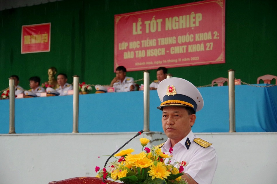Ngày 14/11, tại TP. Cam Ranh, tỉnh Khánh Hòa, Trung tâm Huấn luyện Vùng 4 Hải quân tổ chức Lễ tốt nghiệp đào tạo hạ sĩ quan-chỉ huy (HSQ-CH), nhân viên chuyên môn kỹ thuật (CMKT) Khóa 27 và lớp học tiếng Trung Quốc Khóa 2 năm 2023. Đại tá Nguyễn Đức Khởi, Phó Tư lệnh Vùng dự và chỉ đạo.