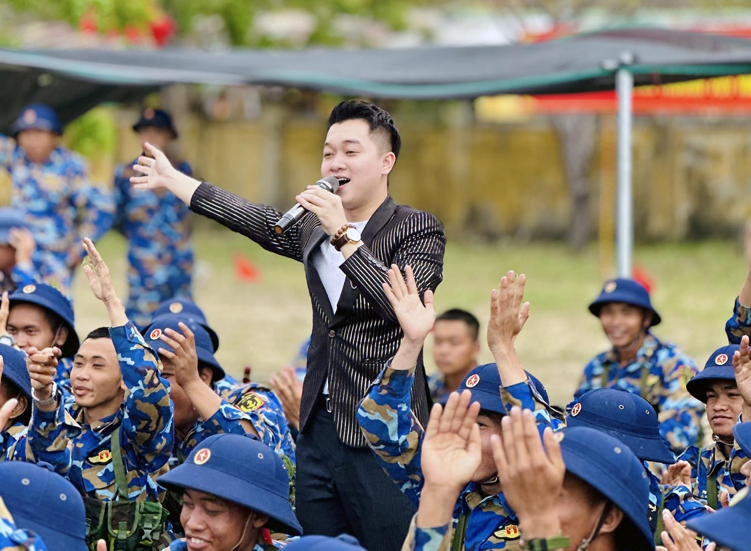 Ca sĩ biểu diễn và giao lưu cùng bộ đội