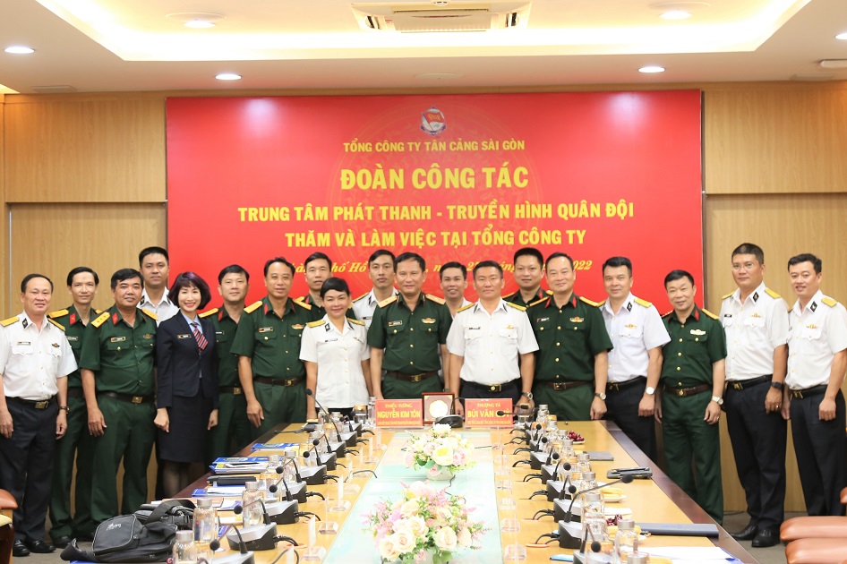 Tại buổi làm việc, lãnh đạo Tổng công ty Tân cảng Sài Gòn và Trung tâm Phát thanh-Truyền hình Quân đội đã trao đổi về công tác phối hợp, hỗ trợ tuyên truyền các hoạt động quân sự, quốc phòng và sản xuất kinh doanh.