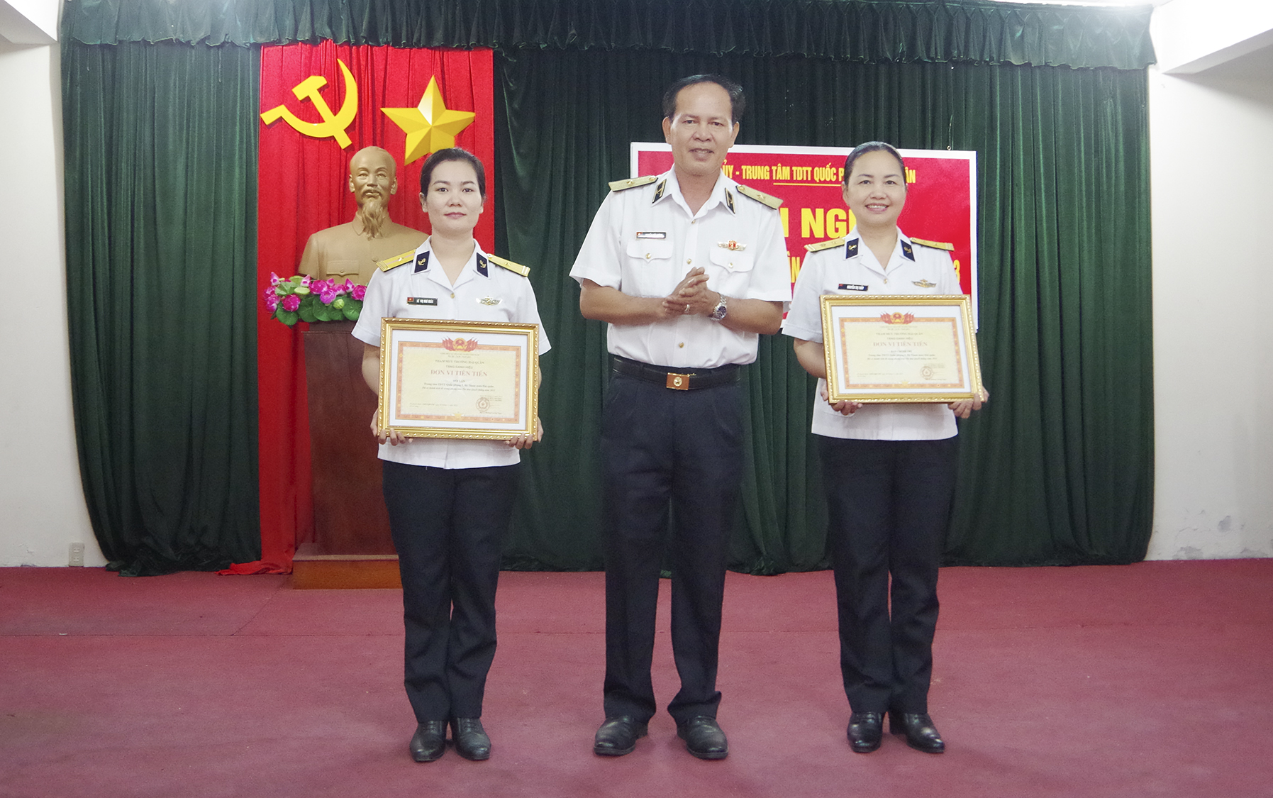 Trong năm, Trung tâm được Bộ trưởng Bộ Quốc phòng và Bộ trưởng Bộ Văn hóa Thể thao và Du lịch tặng Bằng khen, Bộ Tư lệnh Quân chủng tặng Cờ thưởng thi đua. Có 1 tập thể được tặng danh hiệu “Đơn vị quyết thắng”, 2 tập thể được tặng danh hiệu “Đơn vị tiên tiến”...
