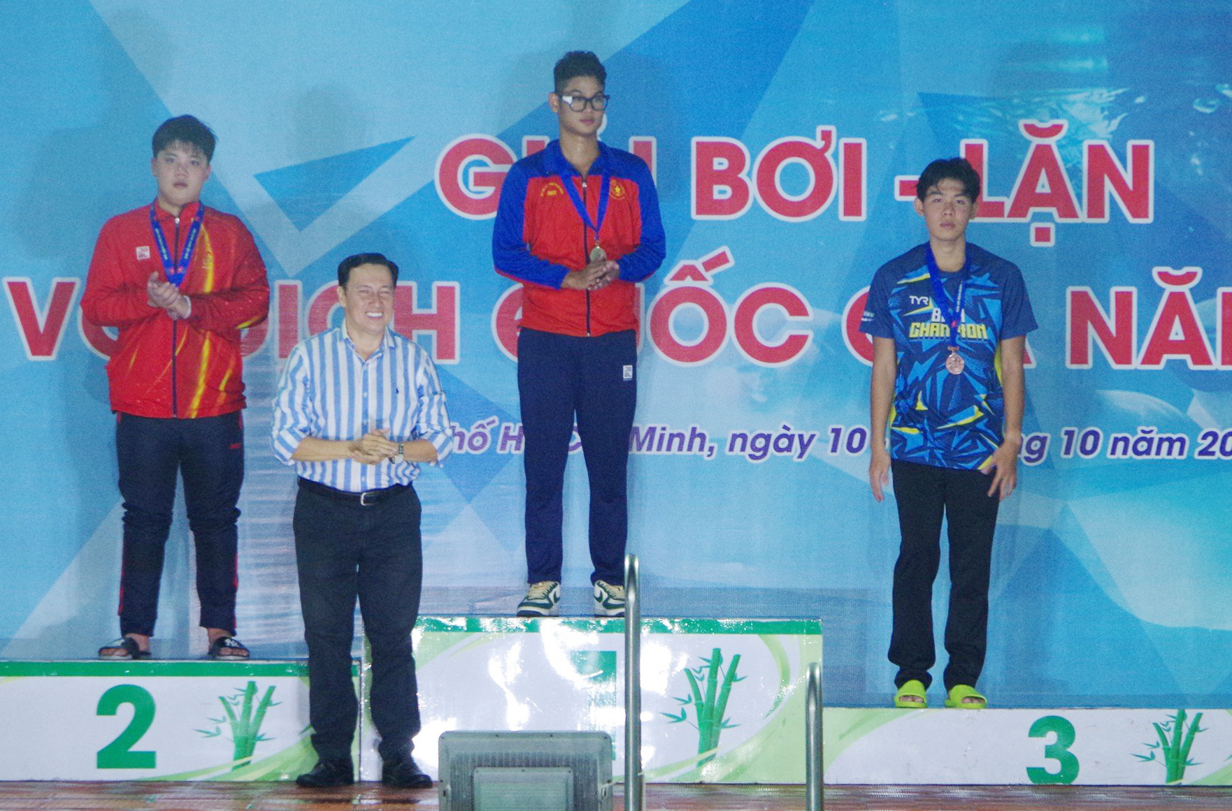 Kim Anh Kiệt nhận HCV nội dung 800 M môn lặn