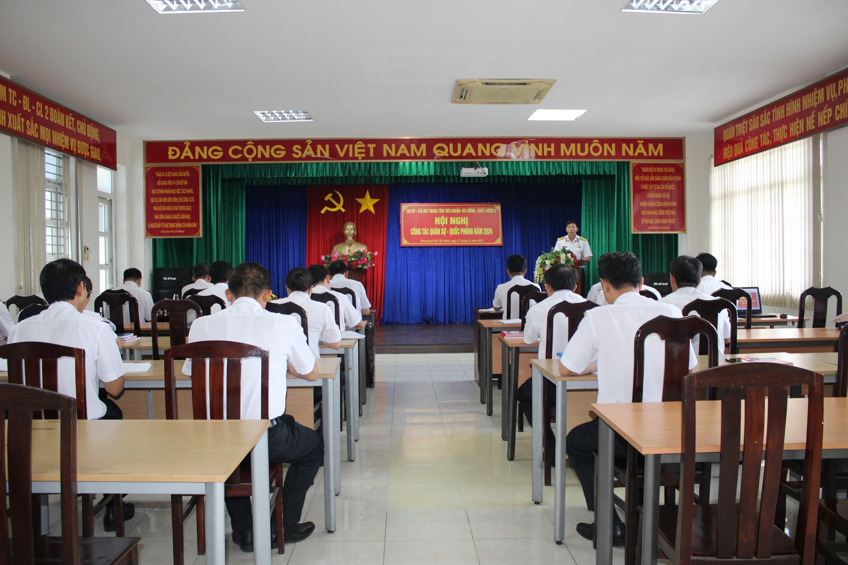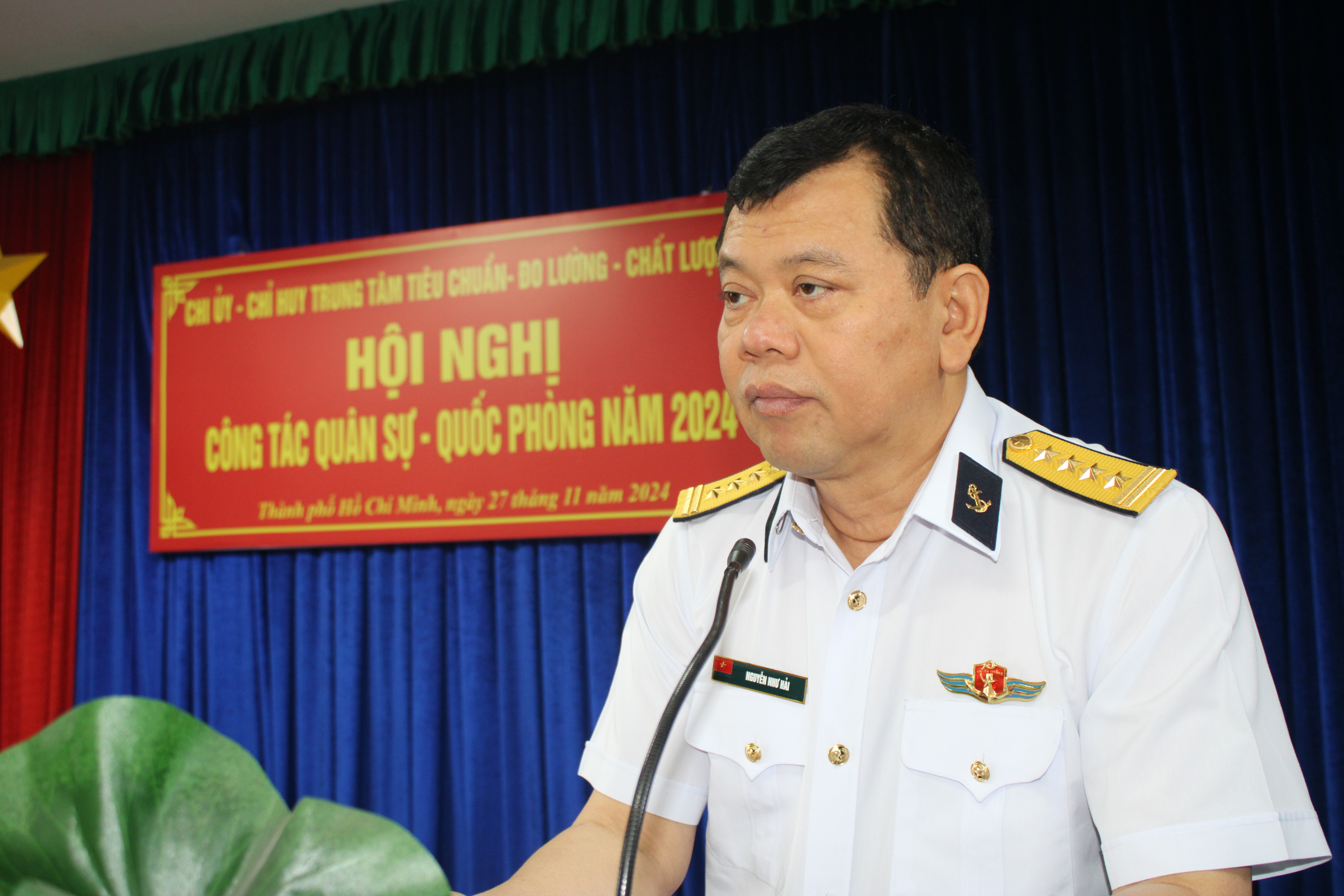Sáng 27/11, tại TP. Hồ Chí Minh, Trung tâm Tiêu chuẩn-Đo lường-Chất lượng 2, Cục Hậu cần - Kỹ thuật Hải quân tổ chức Hội nghị công tác quân sự - quốc phòng năm 2024. Đại tá Nguyễn Như Hải, Phó Chủ nhiệm Cục Hậu cần - Kỹ thuật Hải quân dự và chỉ đạo.