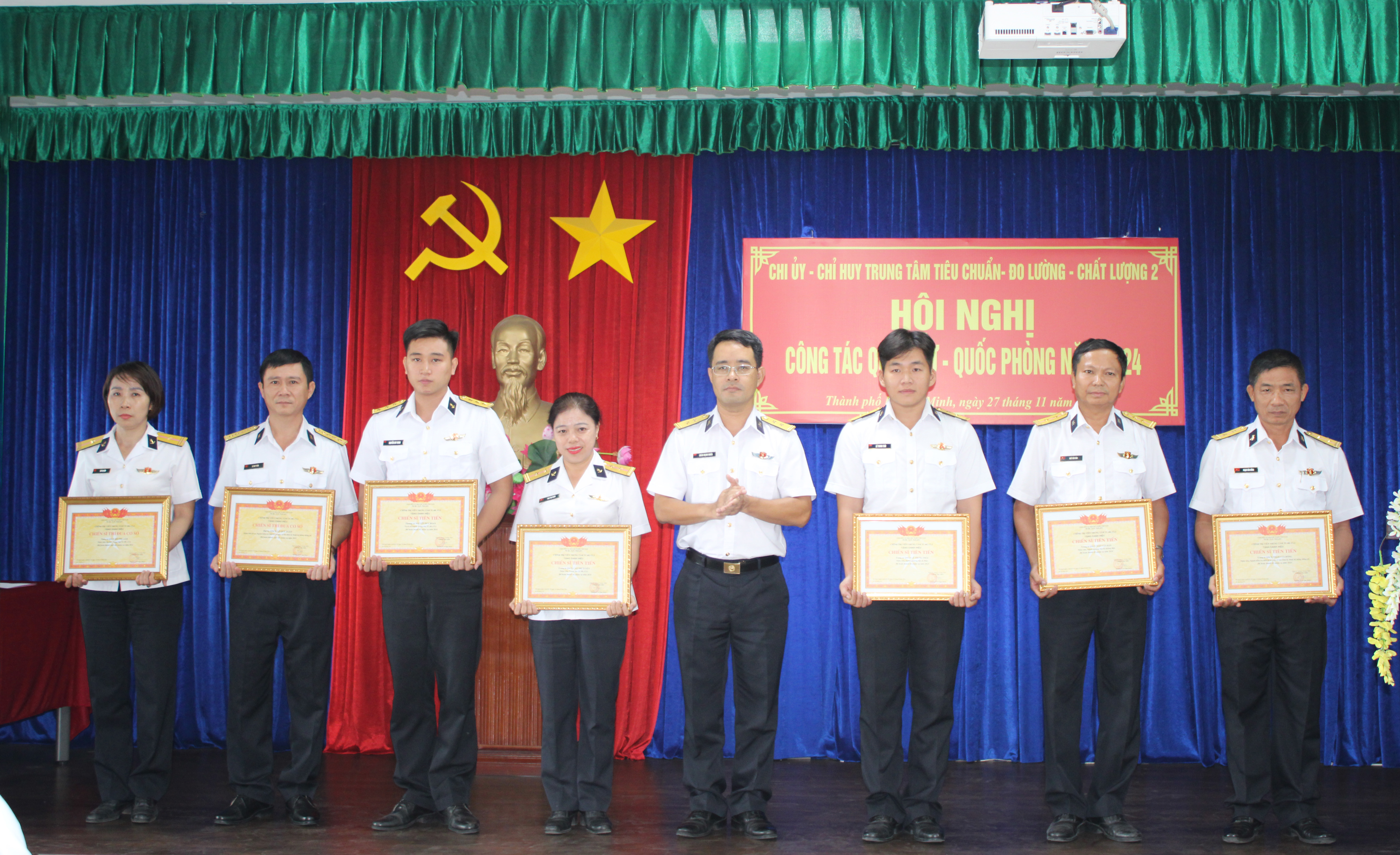 Tổng kết phong trào thi đua quyết thắng năm 2024, Trung tâm được đề nghị tặng Cờ thi đua của Bộ Tư lệnh Hải quân; có 3 tập thể và 11 cá nhân được các cấp khen thưởng.