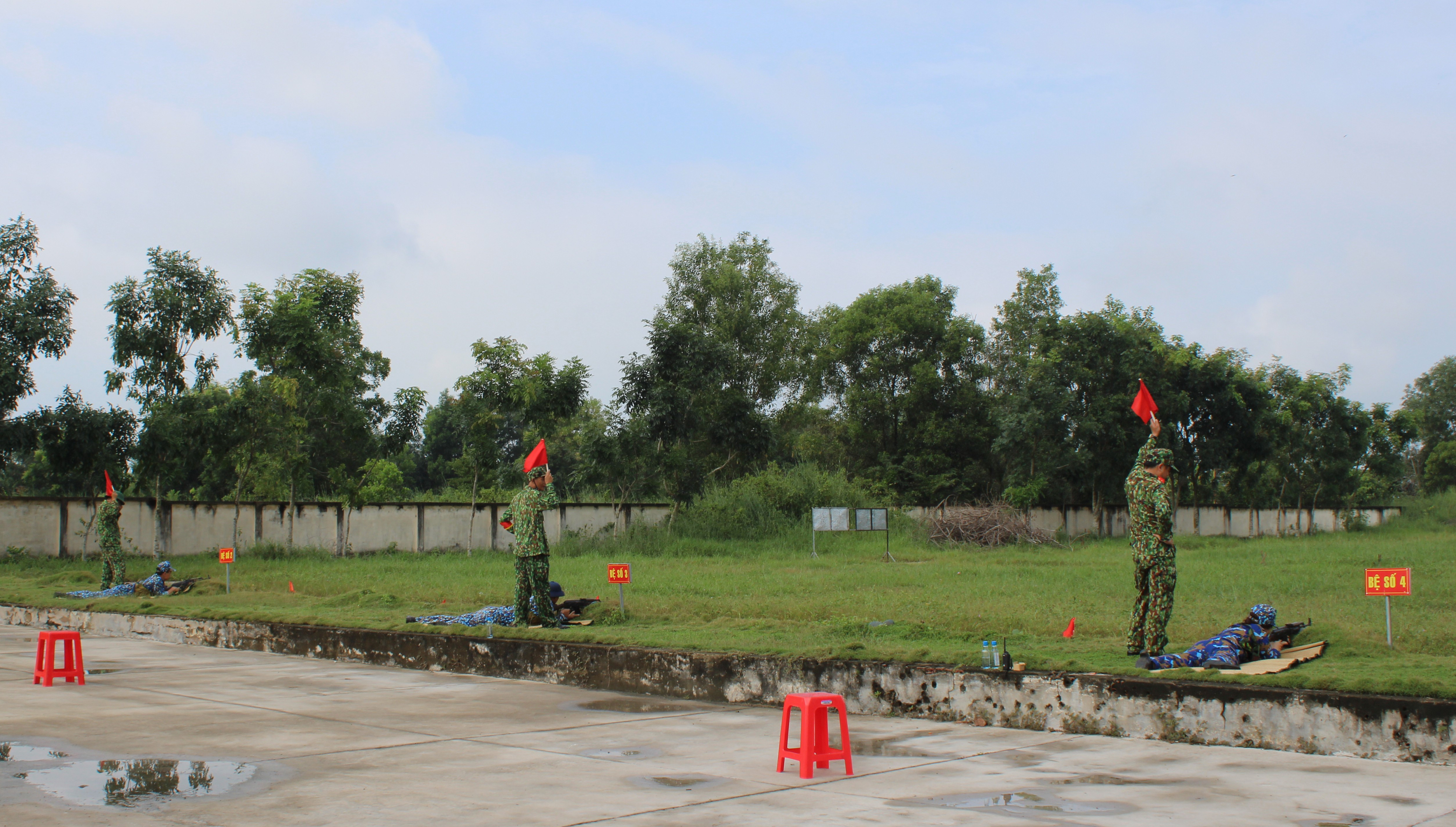 Các đồng chí sĩ quan kiểm tra bắn súng K54 bài 1; QNCN kiểm tra bắn súng tiểu liên AK bài 1.