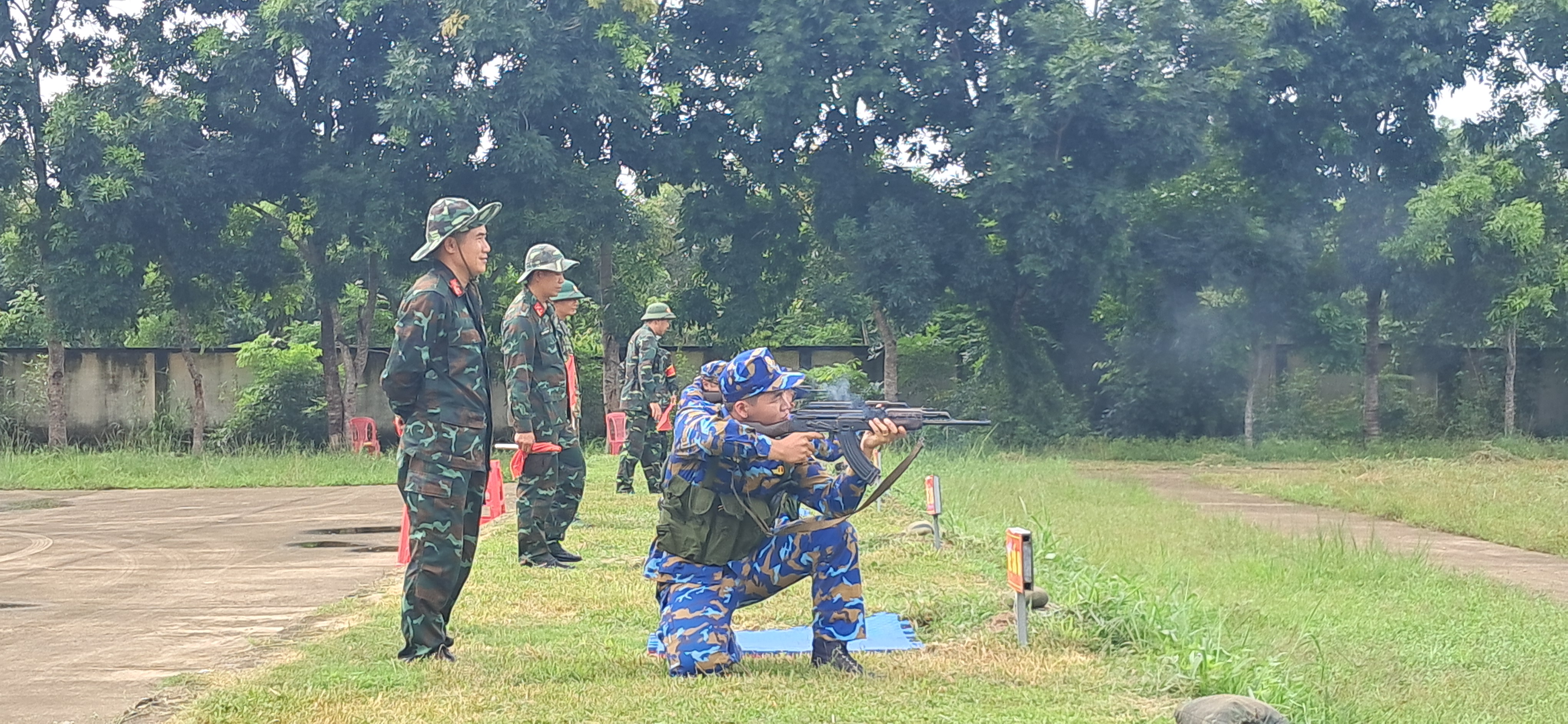 Các đồng chí sĩ quan kiểm tra bắn súng K54 bài 1; QNCN kiểm tra bắn súng tiểu liên AK bài 1.