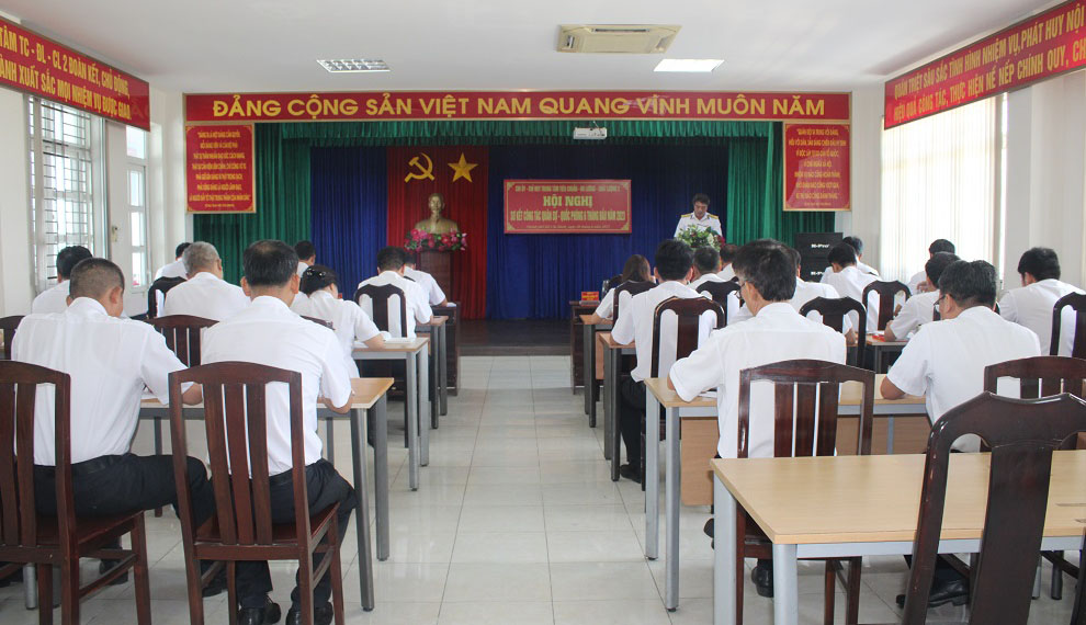 Chiều 20/6, tại TP. Hồ Chí Minh, Trung tâm Tiêu chuẩn-Đo lường-Chất lượng 2, Cục Kỹ thuật Hải quân tổ chức Hội nghị sơ kết công tác quân sự - quốc phòng 6 tháng đầu năm 2023. Đại tá Lê Hồng Quang, Phó Chủ nhiệm Kỹ thuật Hải quân dự và chỉ đạo.