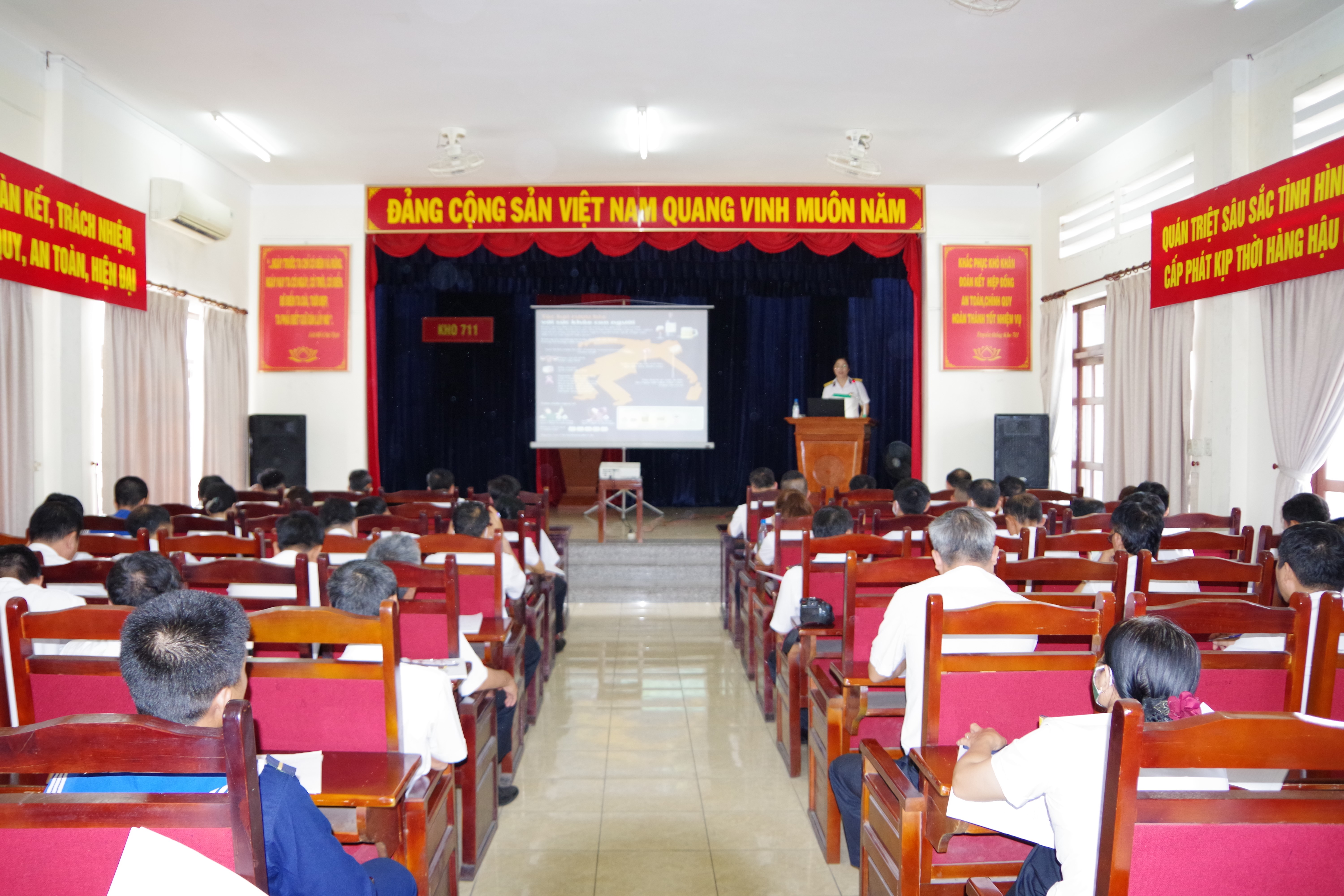 Báo cáo viên của Tòa án Quân sự khu vực Quân chủng Hải quân đã tuyên truyền, phổ biến 2 chuyên đề: Một số nội dung cơ bản của Luật Phòng, chống tác hại của rượu, bia; Một số loại tội phạm phổ biến trên không gian mạng, chế tài xử lý, biện pháp phòng ngừa, ngăn chặn.