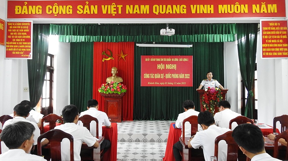 Sáng 1/12, tại TP.Cam Ranh, tỉnh Khánh Hòa, Trung tâm Tiêu chuẩn – Đo lường – Chất lượng 3, Cục Kỹ thuật Hải quân tổ chức Hội nghị công tác quân sự - quốc phòng năm 2022. Dự, chỉ đạo hội nghị có Thượng tá Lê Hoàng Việt, Phó Chủ nhiệm Kỹ thuật Hải quân.
