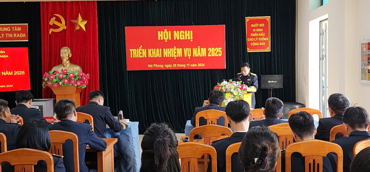 Chiều 26/11, tại Hải Phòng, Trung tâm Xử lý tin ra đa, Bộ Tham mưu Hải quân tổ chức Hội nghị triển khai nhiệm vụ năm 2025. Đại tá Nguyễn Trung Kiên, Chủ nhiệm ra đa Quân chủng dự và chỉ đạo.