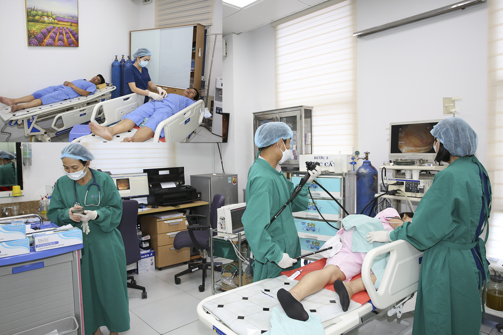 Khu vực nội soi tiêu hóa, các bác sĩ khám và chăm sóc người bệnh tận tình, chu đáo