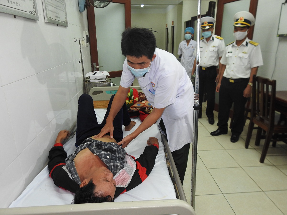 Các ngư dân trên tàu cá đã đưa anh Kim vào đảo cấp cứu. Kíp quân y của Trung tâm Y tế thị trấn Trường Sa do Đại úy Bùi Văn Phúc chỉ huy đã tiến hành thăm khám và theo dõi; chẩn đoán bệnh nhân Kim bị viêm dạ dày, ruột, chưa loại trừ viêm tụy cấp. Các y, bác sĩ đã điều trị kháng sinh và truyền dịch cho bệnh nhân.