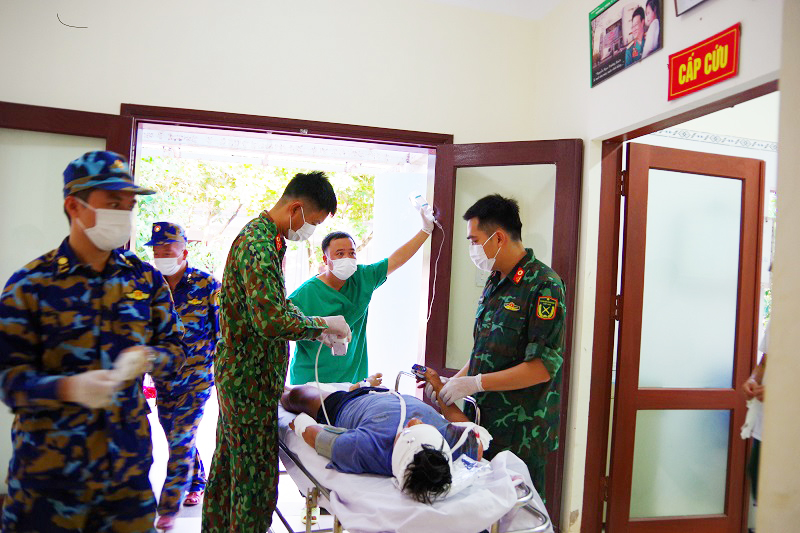 Quân y của đảo đã tổ chức phẫu thuật, cắt lọc, khâu vết thương phần mềm; nắn chỉnh, bó bột cánh tay phải; dùng kháng sinh, giảm đau, giảm nề và thuốc chống đông cho bệnh nhân.