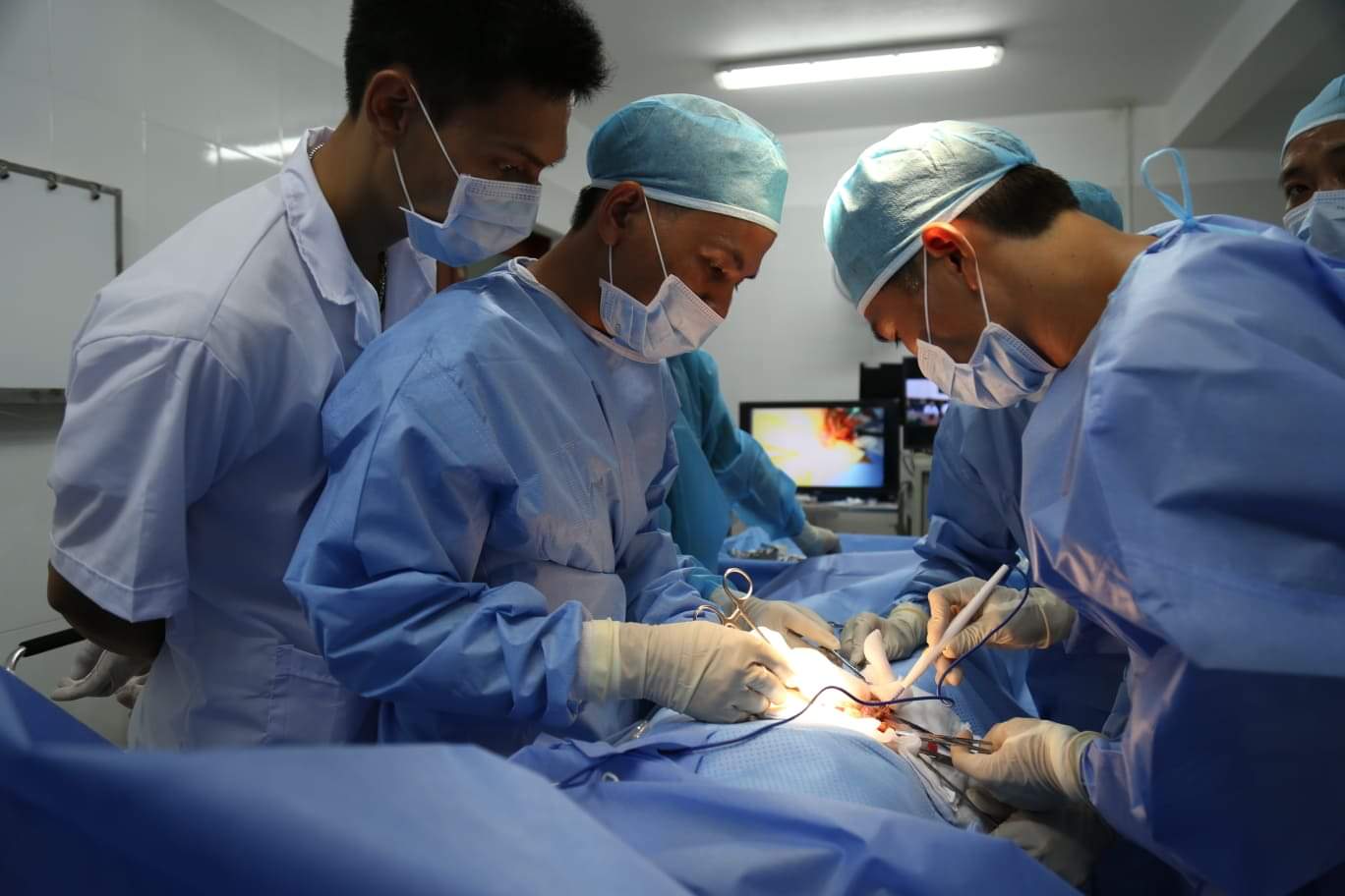 Các y, bác sĩ Trung tâm y tế Trường Sa phẫu thuật cho bệnh nhân Tân