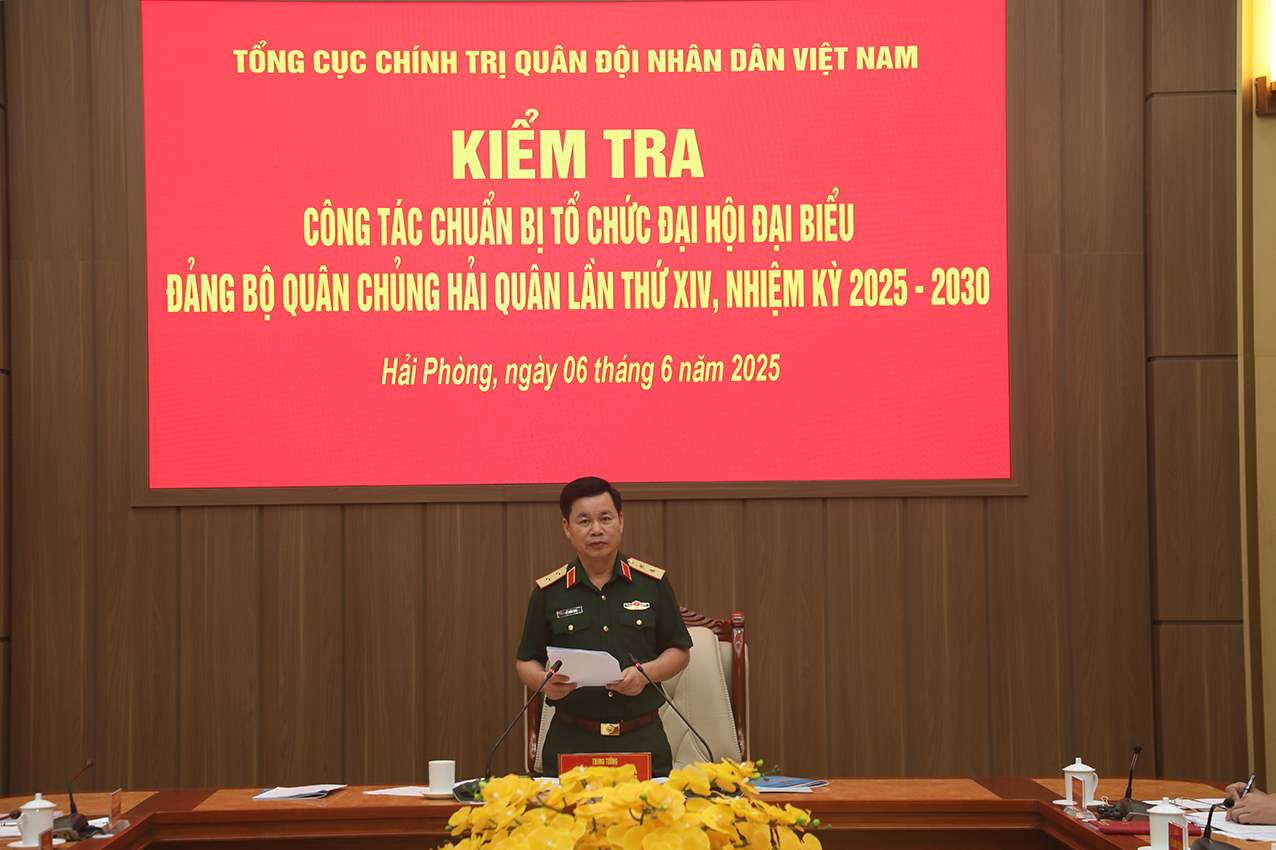 Sáng 6/6, tại TP. Hải Phòng, đoàn công tác của Tổng cục Chính trị Quân đội nhân dân (QĐND) Việt Nam kiểm tra công tác chuẩn bị Đại hội đại biểu Đảng bộ Quân chủng Hải quân lần thứ XIV, nhiệm kỳ 2025-2030.