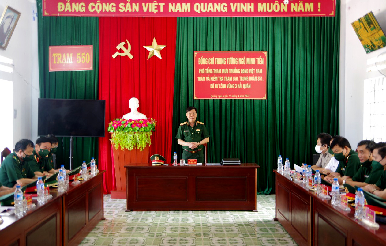 Sáng 21/4, tại huyện đảo Lý Sơn, tỉnh Quảng Ngãi, đoàn công tác của Bộ Tổng Tham mưu do Trung tướng Ngô Minh Tiến, Phó Tổng Tham mưu trưởng làm trưởng đoàn đã đến thăm, kiểm tra Trạm ra đa 550, Trung đoàn 351, Vùng 3 Hải quân.