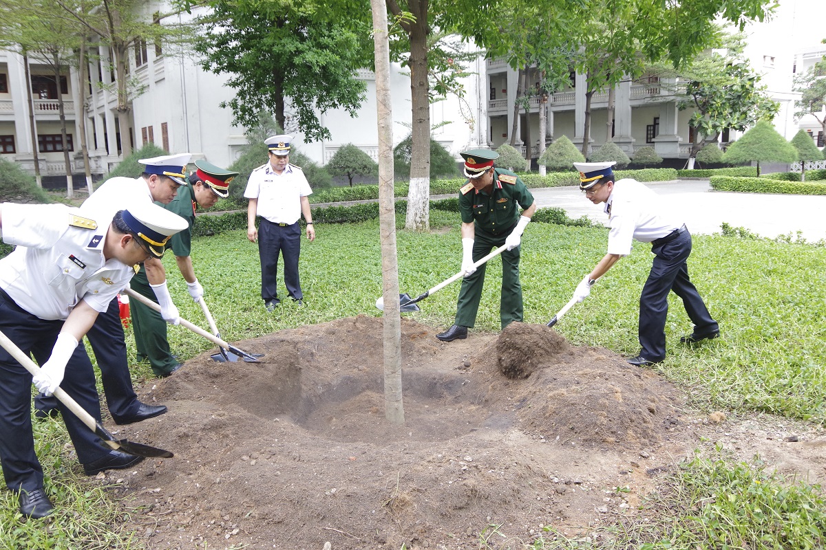 Nhân dịp này, Trung tướng Ngô Minh Tiến và đoàn công tác đã trồng cây lưu niệm tại khuôn viên của Trường Cao đẳng Kỹ thuật Hải quân.