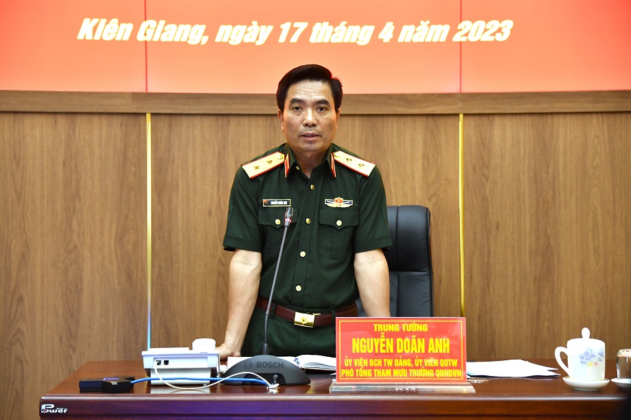 Chiều 17/4, tại TP. Phú Quốc, tỉnh Kiên Giang, Trung tướng Nguyễn Doãn Anh, Uỷ viên Trung ương Đảng, Phó Tổng Tham mưu trưởng Quân đội Nhân dân Việt Nam dẫn đầu đoàn công tác của Bộ Quốc phòng đã đến thăm, nắm tình hình thực hiện nhiệm vụ quân sự, quốc phòng Quý I năm 2023 tại Vùng 5 Hải quân.