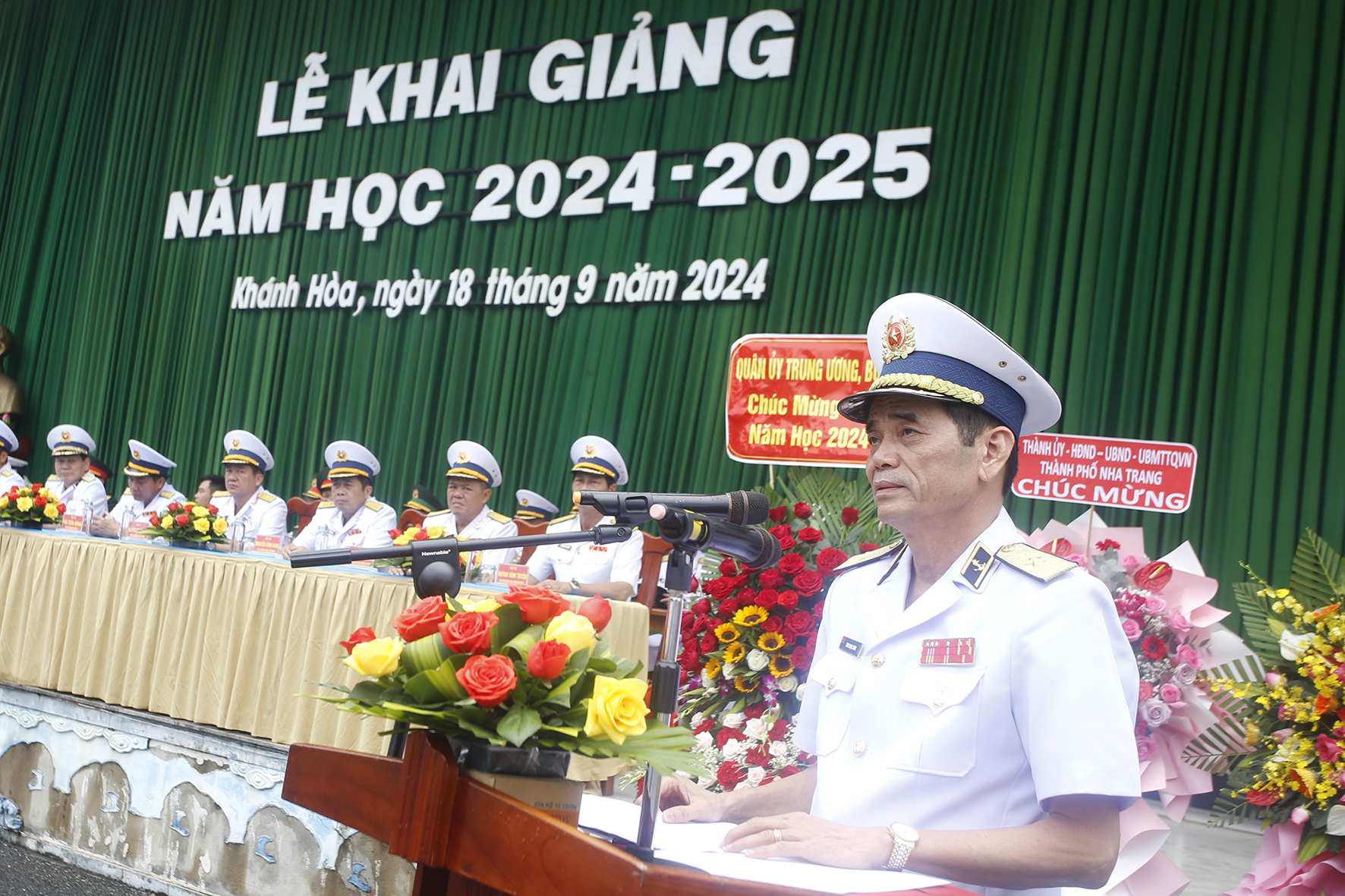 Chuẩn Đô đốc Chu Ngọc Sáng, Chính ủy Học viện Hải quân trình bày diễn văn khai giảng