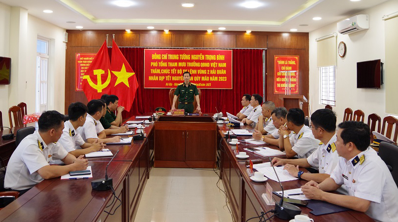 Đồng chí Phó Tổng Tham mưu trưởng yêu cầu: Năm 2023, Đảng ủy, Bộ Tư lệnh Vùng 2 quán triệt, triển khai thực hiện nghiêm chỉ thị, mệnh lệnh của trên; duy trì nghiêm lực lượng, phương tiện SSCĐ ở các cấp, nhất là trên hướng biển; trước mắt cần duy trì nghiêm trực SSCĐ và tổ chức tốt các hoạt động vui xuân, đón Tết cho bộ đội, đảm bảo an toàn tuyệt đối.