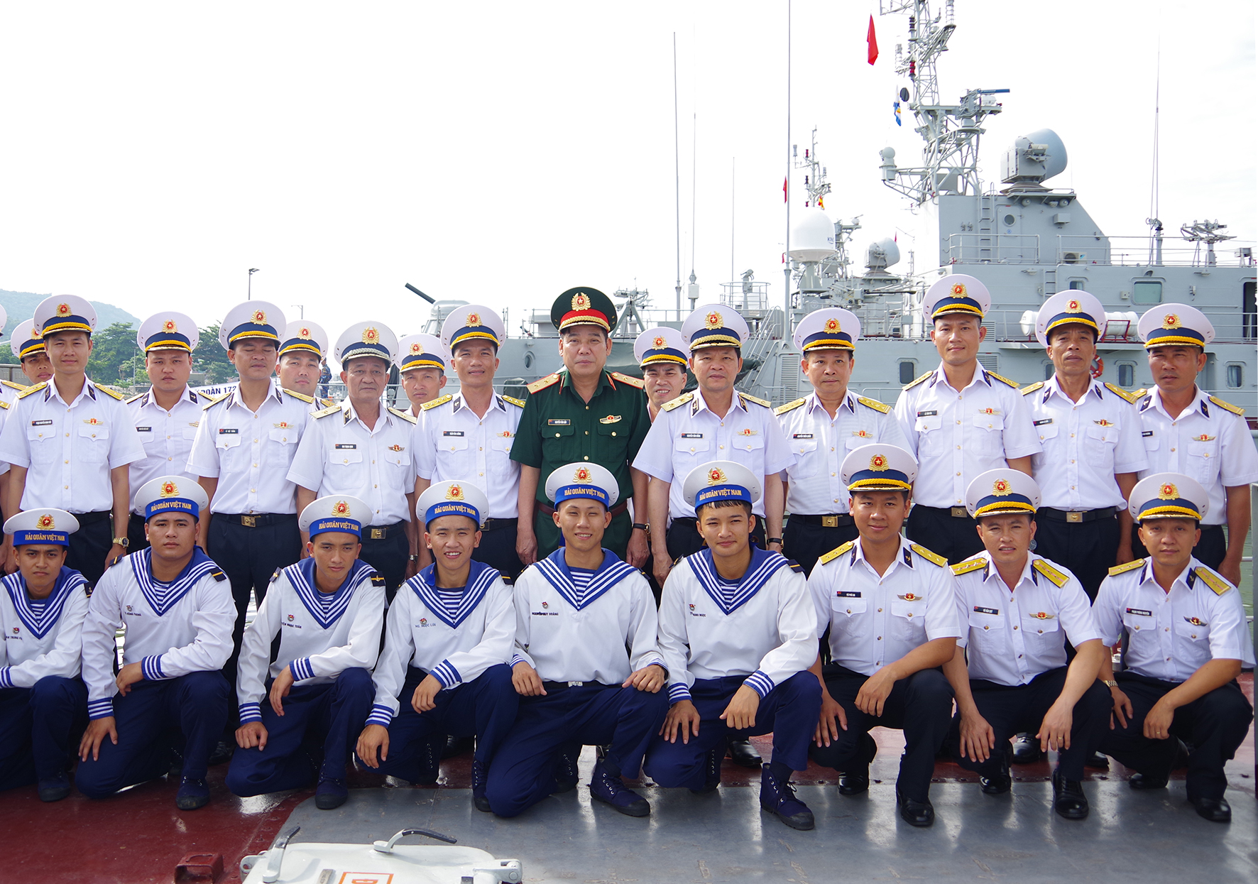 Thủ trưởng Tổng cục Chính trị và Bộ Tư lệnh Hải quân chụp ảnh lưu niệm với cán bộ, chiến sĩ Vùng 3
