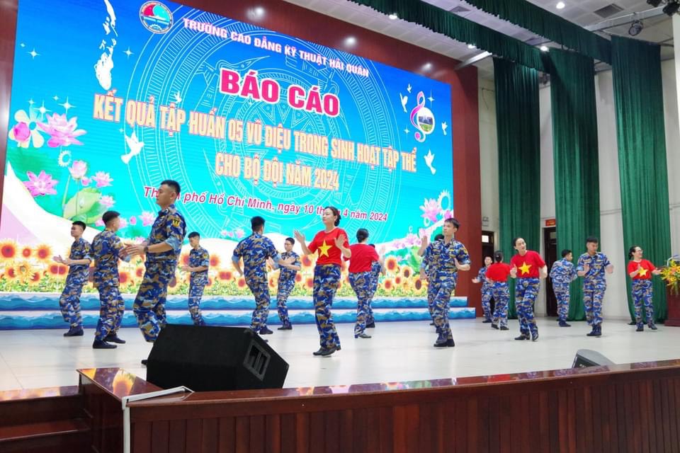 Chiều 10/4, tại TP. Hồ Chí Minh, Trường Cao đẳng Kỹ thuật Hải quân bế mạc tập huấn 5 vũ điệu trong sinh hoạt tập thể cho bộ đội năm 2024. Thượng tá Lương Đức Khanh, Bí thư Đảng ủy, Chính ủy Nhà trường dự và chủ trì. Cùng dự có Đại tá Đỗ Ngọc Hiểu, Hiệu trưởng Nhà trường; các đồng chí trong Đảng uỷ, Ban Giám hiệu; lãnh đạo, chỉ huy các cơ quan, khoa, đơn vị; cán bộ, giảng viên, nhân viên, học viên, chiến sĩ Nhà trường.
