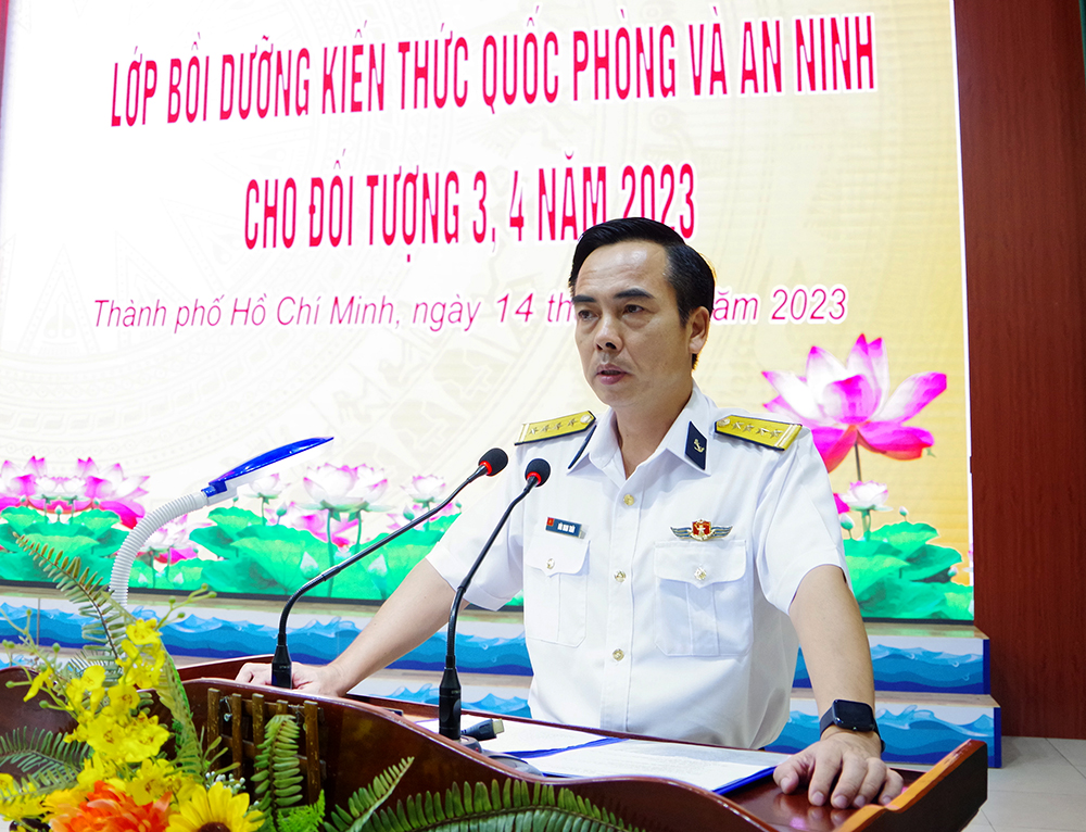 Chiều 14/12, tại TP. Hồ Chí Minh, Trường Cao đẳng Kỹ thuật Hải quân tổ chức khai mạc Lớp bồi dưỡng kiến thức quốc phòng, an ninh cho đối tượng 3 và 4 năm 2023. Đại tá Bùi Nam Thái, Phó Hiệu trưởng dự, chủ trì.