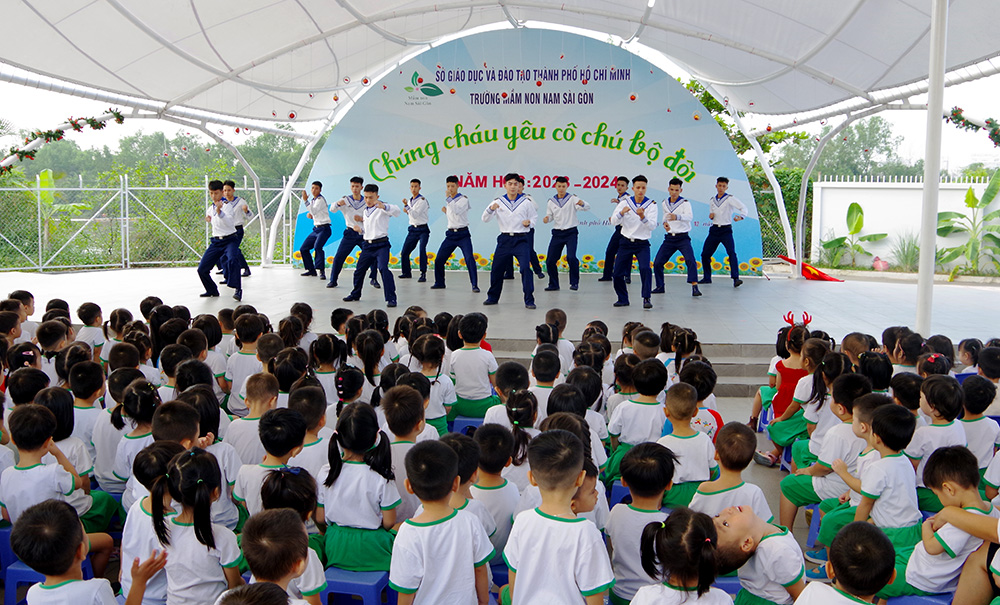 Sáng 18/12, tại TP. Hồ Chí Minh, cán bộ, học viên Trường Cao đẳng Kỹ thuật Hải quân đã đến thăm và giao lưu với hơn 400 giáo viên, học sinh Trường Mầm non Nam Sài Gòn, Quận 7.