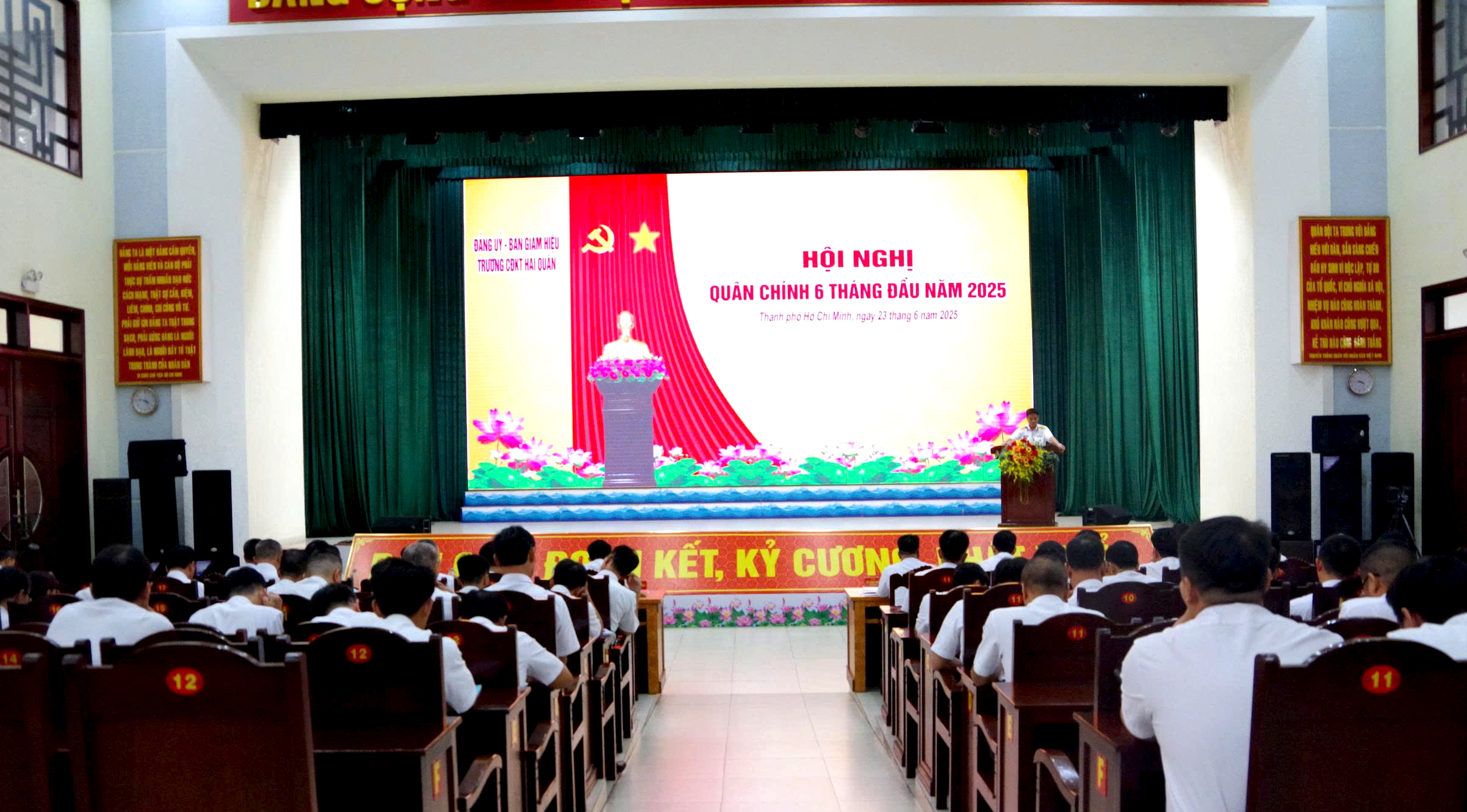Chiều 23/6, tại TP Hồ Chí Minh, Trường Cao đẳng Kỹ thuật Hải quân tổ chức Hội nghị quân chính 6 tháng đầu năm 2025. Đại tá Đỗ Ngọc Hiểu, Hiệu trưởng chủ trì; Đại tá Lương Đức Khanh, Bí thư Đảng ủy, Chính ủy quán triệt nghị quyết lãnh đạo 6 tháng cuối năm.