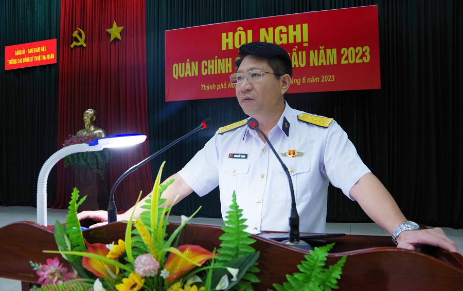 Sáng 30/6, tại TP. Hồ Chí Minh, Trường Cao đẳng Kỹ thuật Hải quân tổ chức Hội nghị quân chính 6 tháng đầu năm 2023. Đại tá Ngô Thành Công, Hiệu trưởng chủ trì. Thượng tá Lương Đức Khanh, Bí thư Đảng ủy, Chính ủy nhà trường quán triệt nghị quyết lãnh đạo thực hiện nhiệm vụ 6 tháng cuối năm 2023.