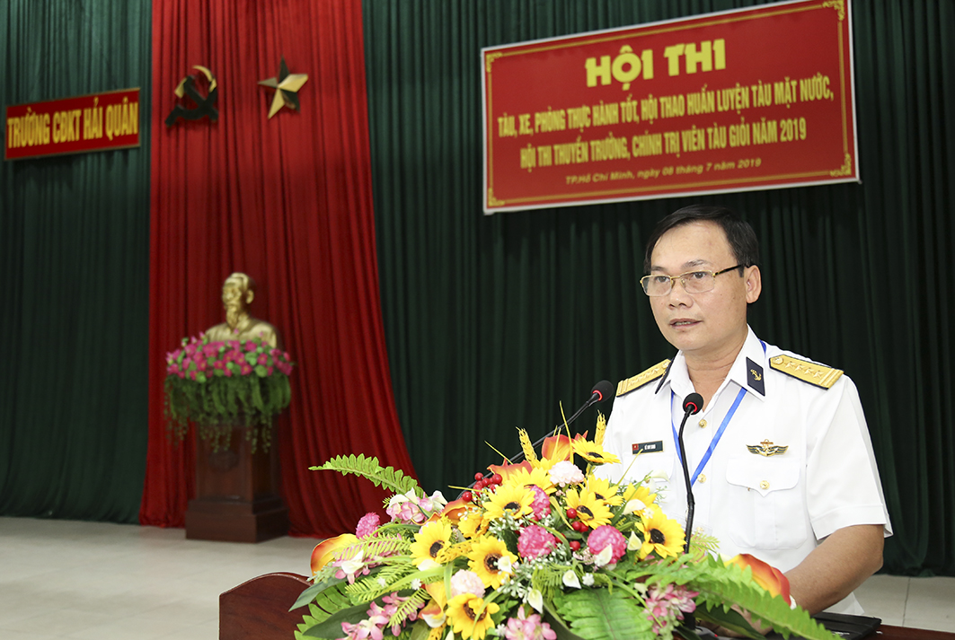 Sáng 8-7, tại TP. Hồ Chí Minh, Trường Cao đẳng kỹ thuật Hải quân tổ chức Hội thi tàu, xe, phòng thực hành tốt, hội thao huấn luyện tàu mặt nước và hội thi thuyền trưởng, chính trị viên tàu giỏi năm 2019. Đại tá Lê Duy Sinh, Hiệu trưởng Nhà trường dự và chủ trì khai mạc.