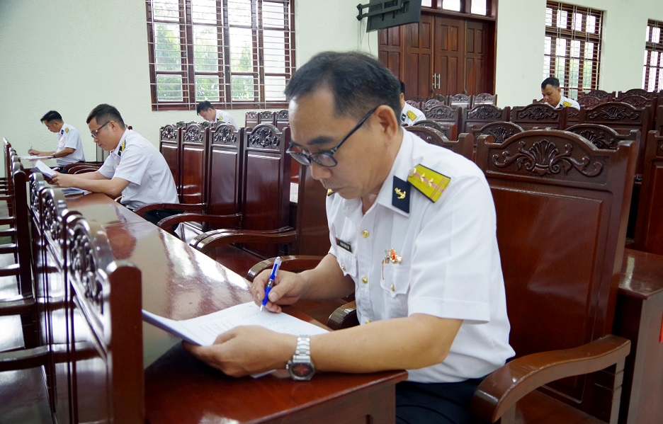 Nội dung thi gồm: Nhận thức về chính trị, quân sự; công tác bảo quản, bảo dưỡng và sửa chữa khắc phục các hư hỏng của VKTBKT; khả năng thao tác, vận hành, sử dụng VKTBKT; chấp hành các quy định trong Điều lệ Công tác kỹ thuật quân đội, công tác kỹ thuật Hải quân.
