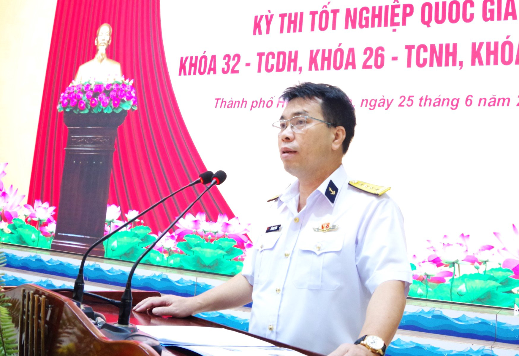 Phát biểu khai mạc, đồng chí Hiệu trưởng Nhà trường yêu cầu: Các thành viên Hội đồng thi, Ban thư ký, lực lượng tham gia tổ chức kỳ thi nắm vững quy chế, quy định, duy trì, điều hành chặt chẽ mọi hoạt động của kỳ thi.
