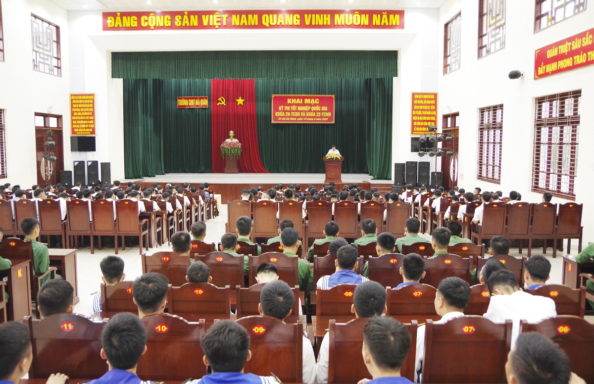 Phát biểu khai mạc, Thượng tá Nguyễn Văn Tuấn yêu cầu: Hội đồng thi, các tiểu ban coi thi, chấm thi làm việc với tinh thần trách nhiệm cao nhất để kỳ thi diễn ra nghiêm túc, đúng quy chế; đánh giá đúng thực chất, khách quan chất lượng dạy-học làm cơ sở rút kinh nghiệm cho các khóa đào tạo tiếp theo. Các lớp, tiểu đoàn, quản lý học viên làm tốt công tác động viên tư tưởng, xây dựng quyết tâm cho học viên, thi đua giành kết quả cao nhất. Các học viên cần bình tĩnh, tự tin, vận dụng sáng tạo kiến thức, kỹ năng đã tích lũy trong quá trình học tập; trả lời đủ, đúng trọng tâm câu hỏi, liên hệ sát thực tế...