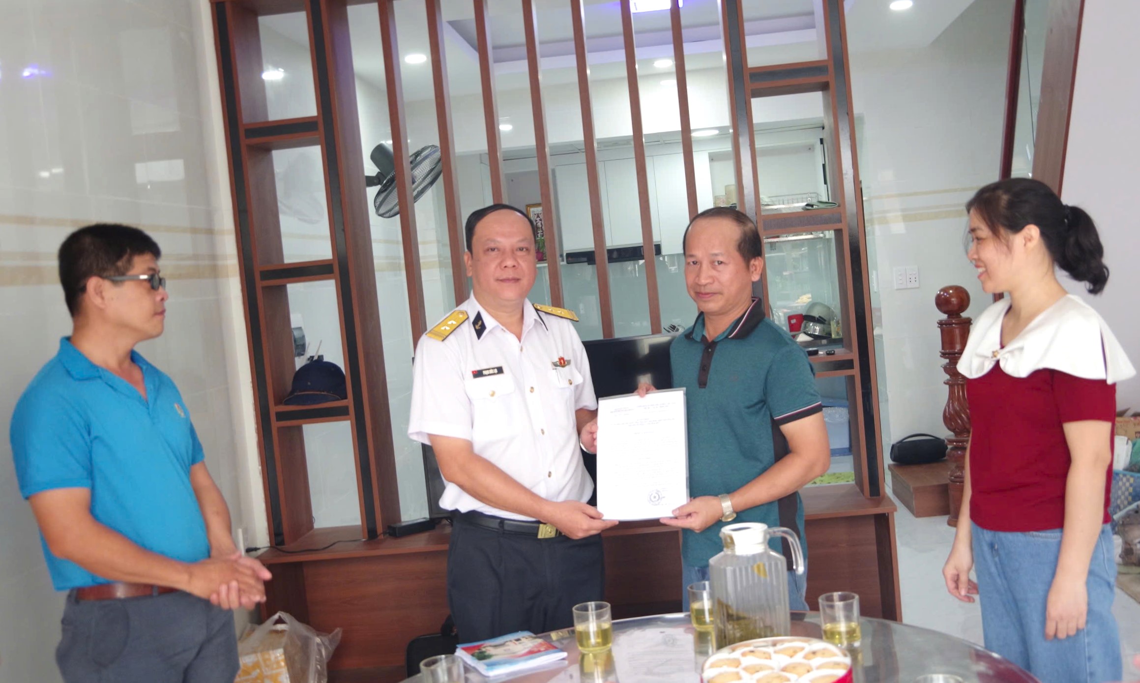 Thủ trưởng Trường Cao đẳng Kỹ thuật Hải quân tặng quà gia đình đồng chí Bình