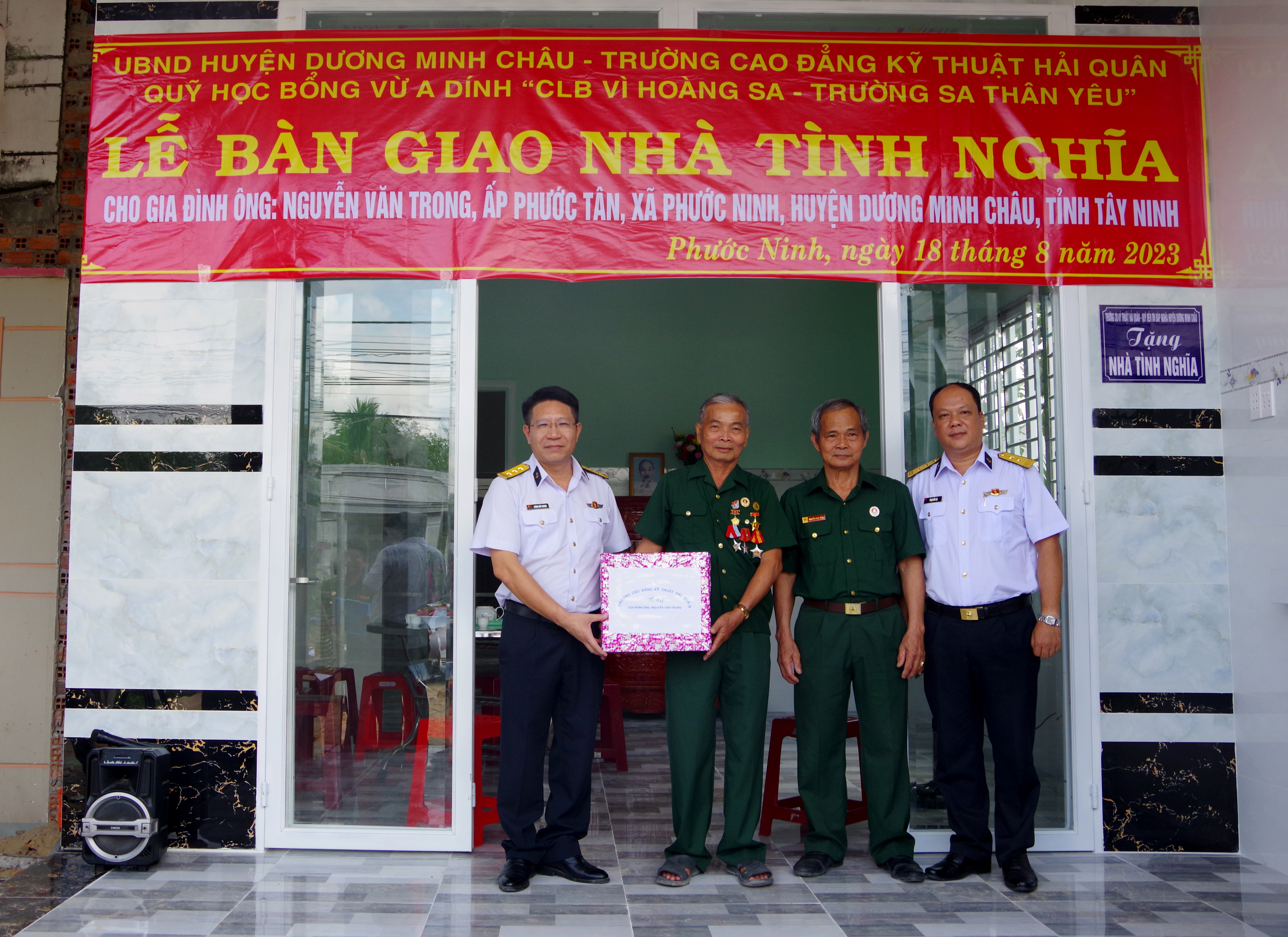 Ngày 18/8, tại tỉnh Tây Ninh, Trường Cao đẳng kỹ thuật Hải quân phối hợp với cấp ủy, chính quyền địa phương và Quỹ học bổng Vừ A Dính tổ chức Lễ khánh thành và bàn giao nhà tình nghĩa tặng gia đình cựu chiến binh Nguyễn Văn Trọng. Thượng tá Lương Đức Khanh, Bí thư Đảng uỷ, Chính uỷ nhà trường chủ trì.