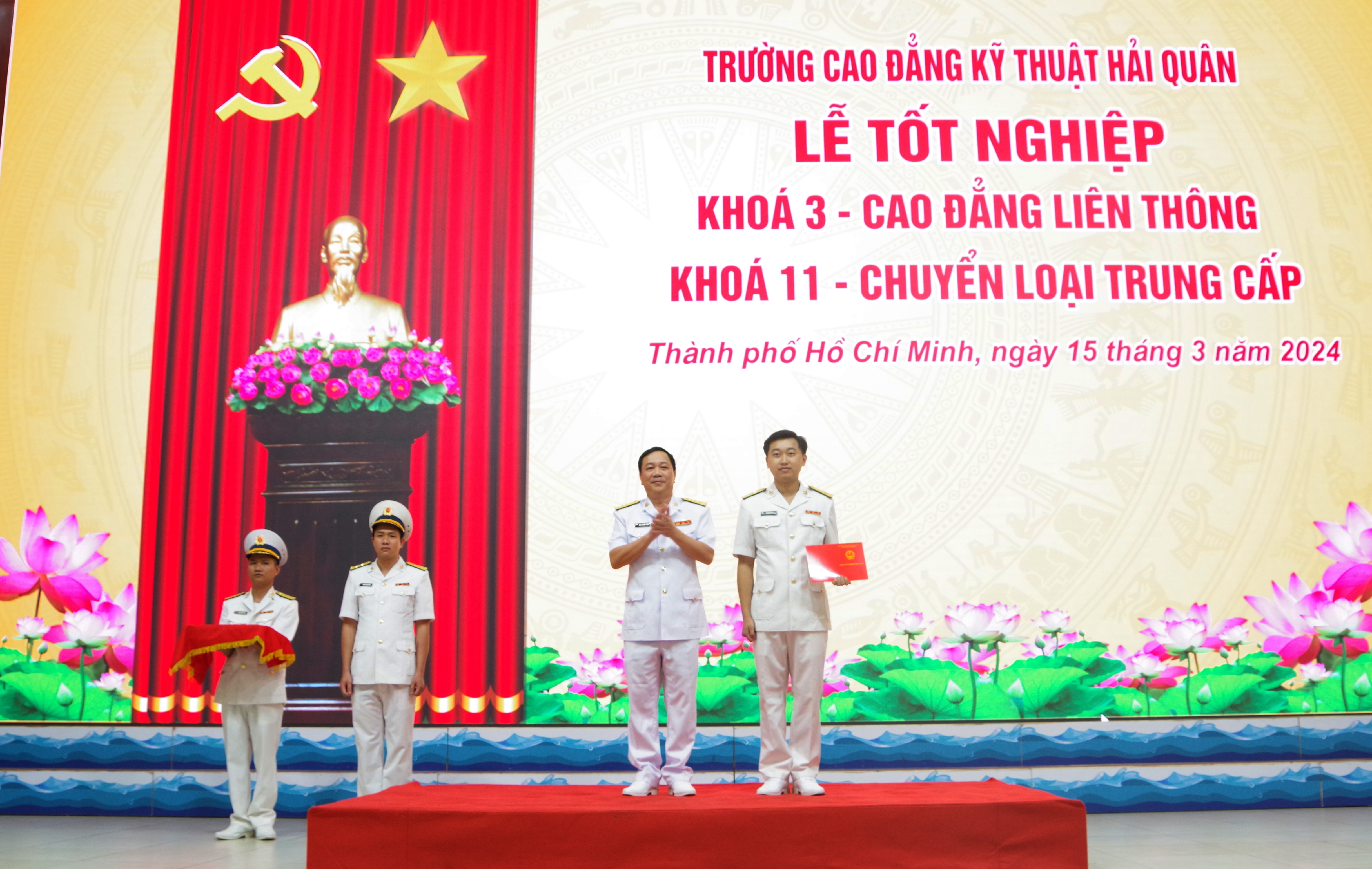 Chiều 15/3, tại TP. Hồ Chí Minh, Trường Cao đẳng Kỹ thuật Hải quân tổ chức Lễ tốt nghiệp Khóa 3 – Cao đẳng liên thông (CĐLT) và Khóa 11 – Chuyển loại trung cấp (CLTC). Đại tá PGS. TS Ngô Thành Công, Hiệu trưởng Nhà trường chủ trì.