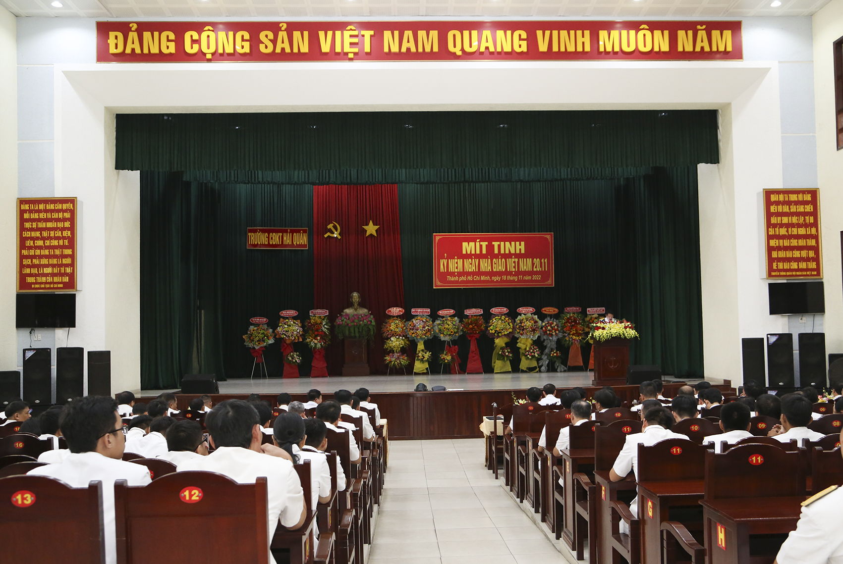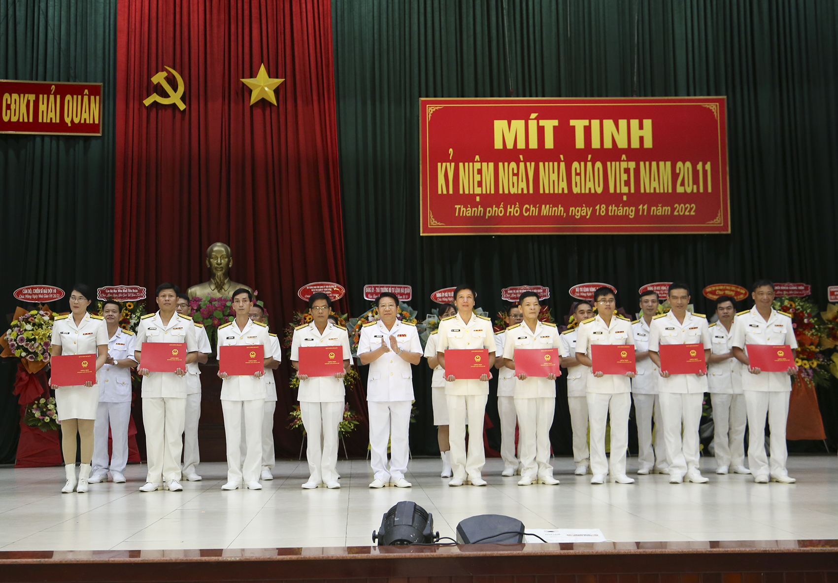 Chiều 18/11, Trường Cao đẳng Kỹ thuật (CĐKT) Hải quân tổ chức mít tinh kỷ niệm 40 năm Ngày nhà giáo Việt Nam (20/11/1982 – 20/11/2022). Thượng tá Lương Đức Khanh, Bí thư Đảng uỷ, Chính ủy nhà trường chủ trì. Cùng dự có các đồng chí trong Đảng ủy, Ban Giám hiệu, cán bộ, giảng viên và hơn 400 học viên.