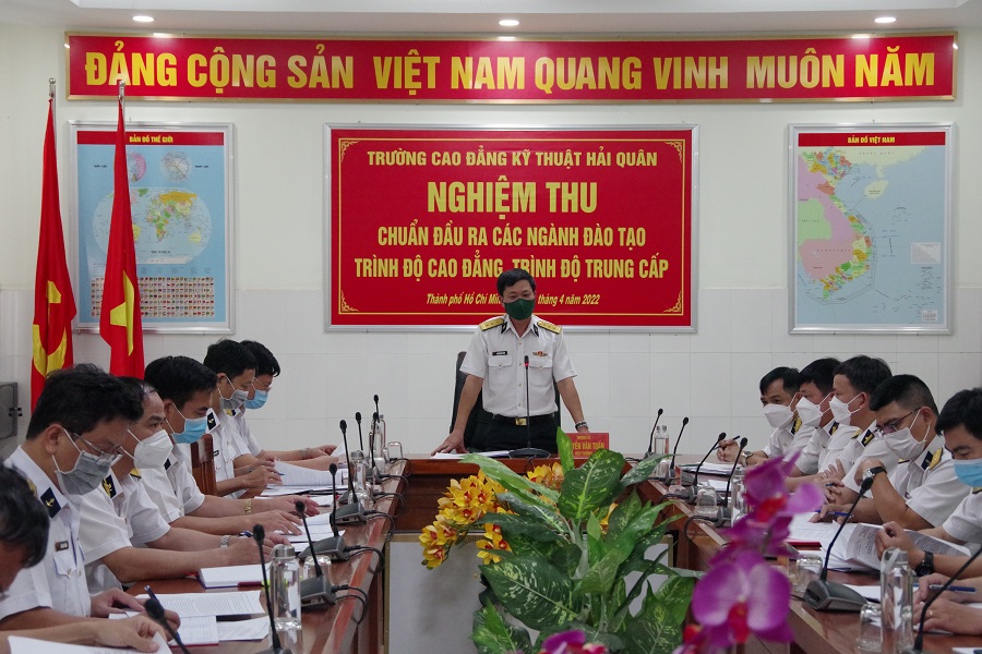 Ngày 21/4, tại TP. Hồ Chí Minh, Trường Cao đẳng Kỹ thuật Hải quân tổ chức nghiệm thu chuẩn đầu ra các ngành đào tạo trình độ cao đẳng, trung cấp. Thượng tá, ThS. Nguyễn Văn Tuấn, Hiệu trưởng, Chủ tịch Hội đồng khoa học nhà trường chủ trì.