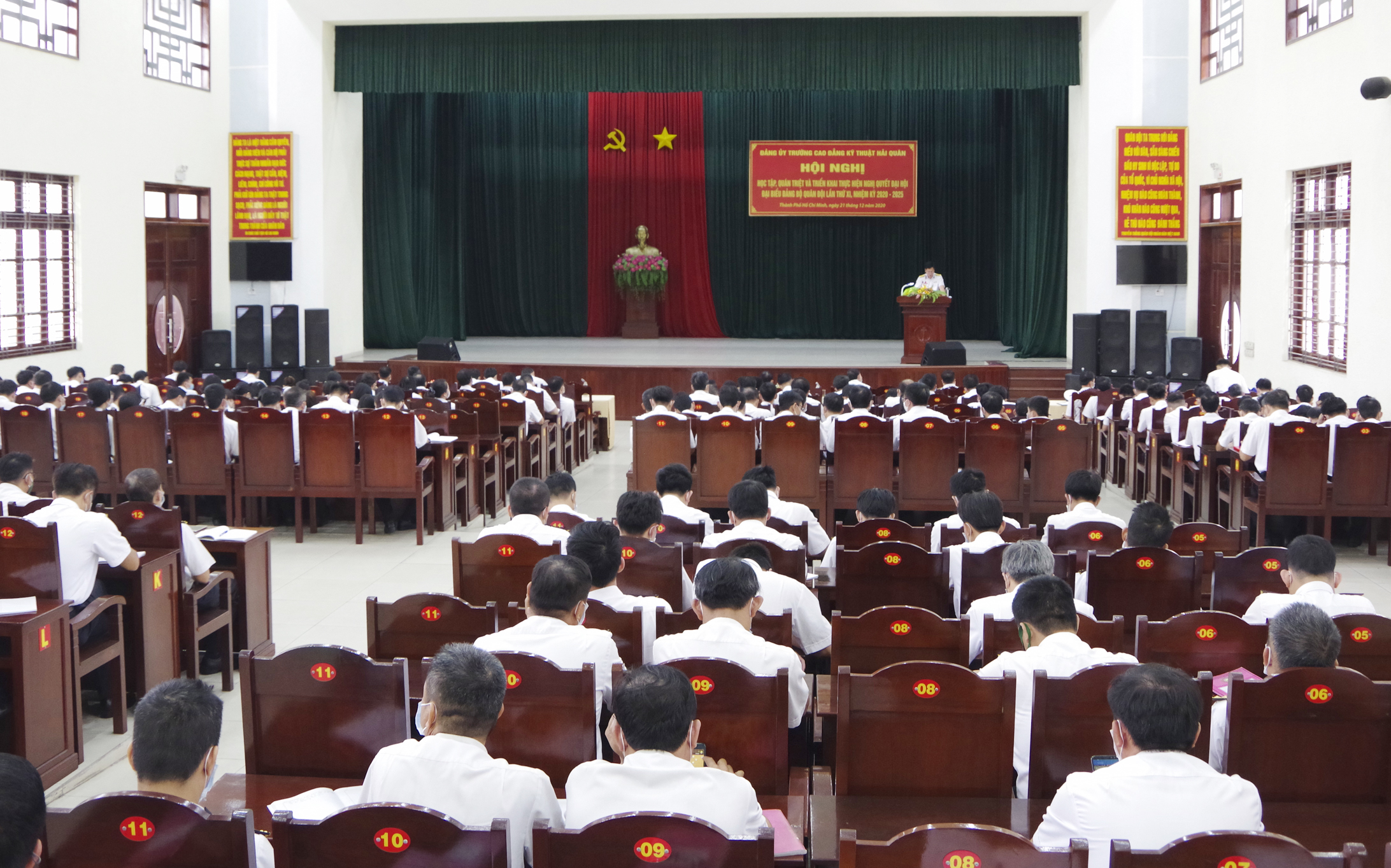 Chiều 21-12, tại TP. Hồ Chí Minh, Đảng ủy Trường Cao đẳng Kỹ thuật Hải quân tổ chức Hội nghị học tập, quán triệt, triển khai thực hiện Nghị quyết Đại hội Đảng bộ Quân đội lần thứ XI, nhiệm kỳ 2020-2025. Đại tá Phạm Công Thanh, Bí thư Đảng ủy, Chính ủy Nhà trường chủ trì.