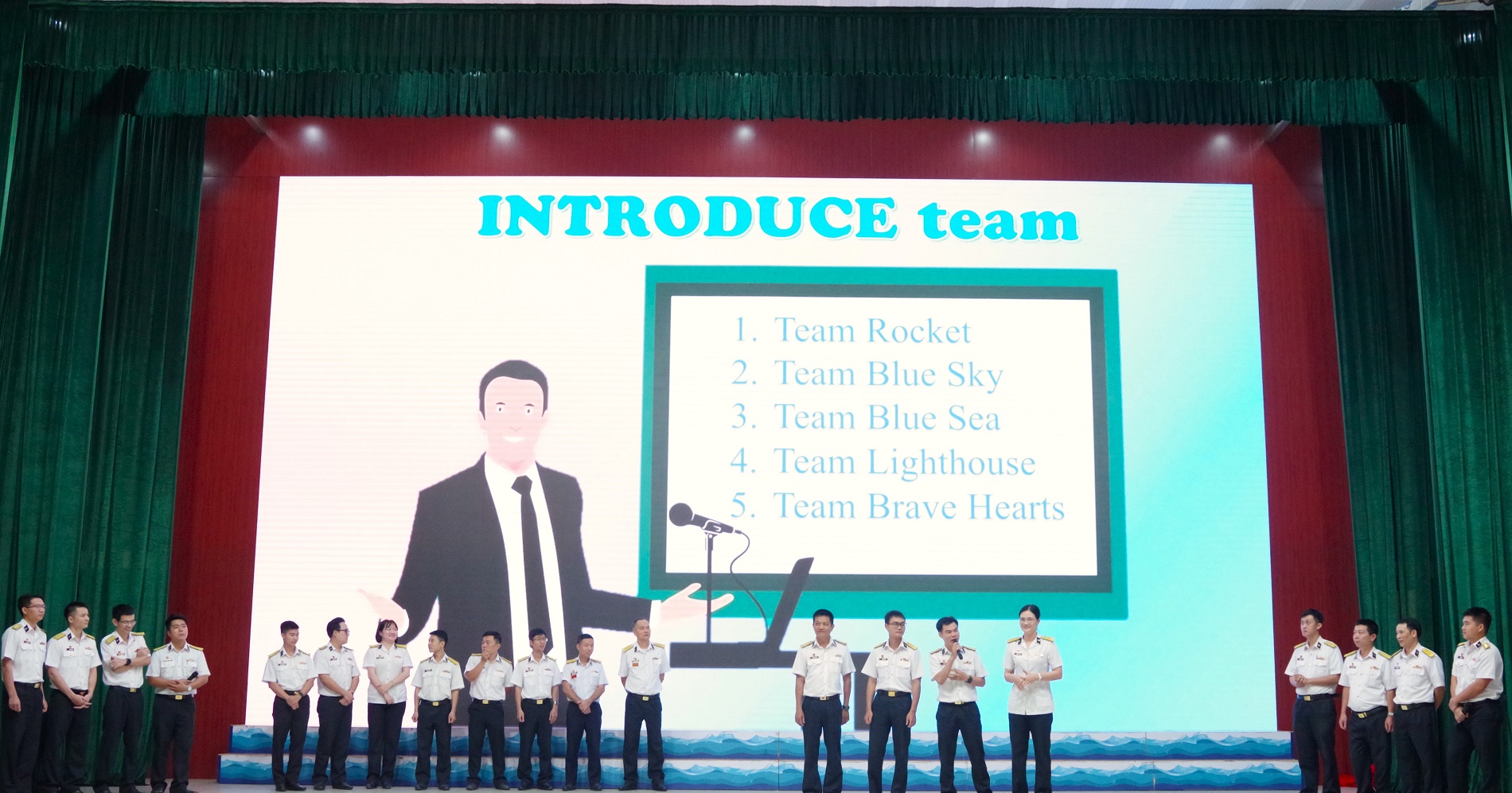 Đại tá Đỗ Ngọc Hiểu, Hiệu trưởng Nhà trường dự và chủ trì. Tham dự có các đồng chí trong Đảng ủy, Ban Giám hiệu, thủ trưởng các cơ quan chức năng; lãnh đạo, chỉ huy các cơ quan, khoa, đơn vị của Nhà trường và 5 đội chơi là các cán bộ, giảng viên, nhân viên trong Câu lạc bộ tiếng Anh.