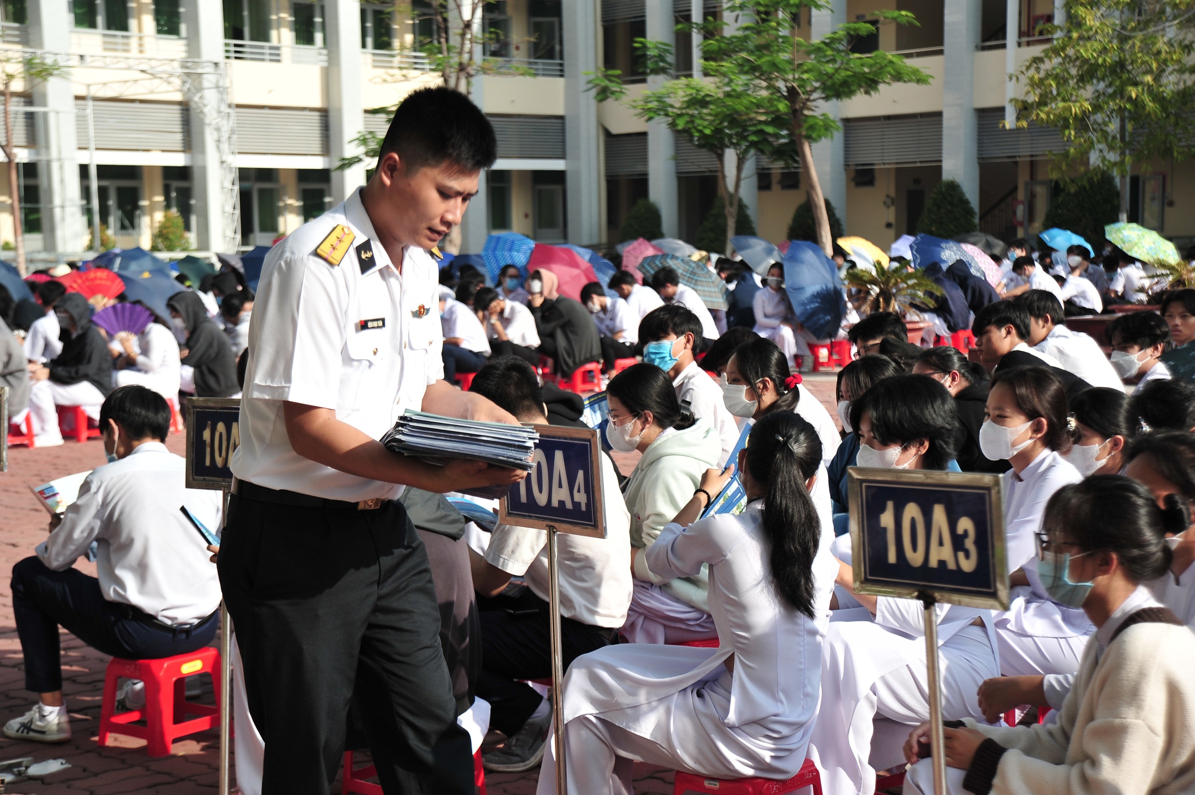 Báo cáo viên của nhà trường cũng đã tuyên truyền thu hút nguồn nhân lực xây dựng Quân chủng Hải quân hiện đại tới hơn 3.000 học sinh của Trường THPT Tây Ninh và Trường THPT Lý Thường Kiệt thuộc huyện Hòa Thành.
