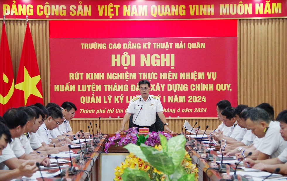 Chiều 2/4, tại TP. Hồ Chí Minh, Trường Cao đẳng Kỹ thuật Hải quân tổ chức Hội nghị rút kinh nghiệm thực hiện nhiệm vụ huấn luyện tháng đầu năm 2024. Đại tá Đỗ Ngọc Hiểu, Hiệu trưởng Nhà trường chủ trì.