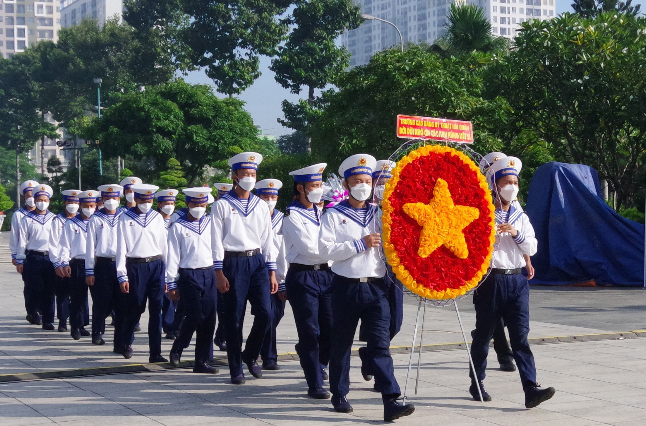 Đoàn viên, thanh niên Trường Cao đẳng kỹ thuật Hải quân dâng hoa tại nghĩa trang liệt sĩ TP. Hồ Chí Minh