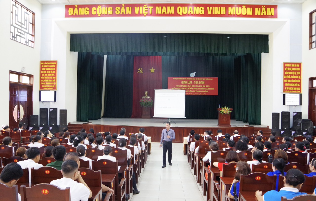 Tại buổi giao lưu, tọa đàm, TS. Trần Tuấn Duy, Phó trưởng Khoa Nhà nước và Pháp luật của Học viện Cán bộ TP. Hồ Chí Minh chia sẻ những kiến thức về Luật Hôn nhân và Gia đình; giải đáp các câu hỏi của cán bộ, hội viên, đoàn viên xoay quanh chủ đề hôn nhân, gia đình; phổ biến các tiêu chí về ứng xử trong gia đình, xây dựng gia đình ấm no, bình đẳng, tiến bộ, hạnh phúc, phòng chống bạo lực gia đình…