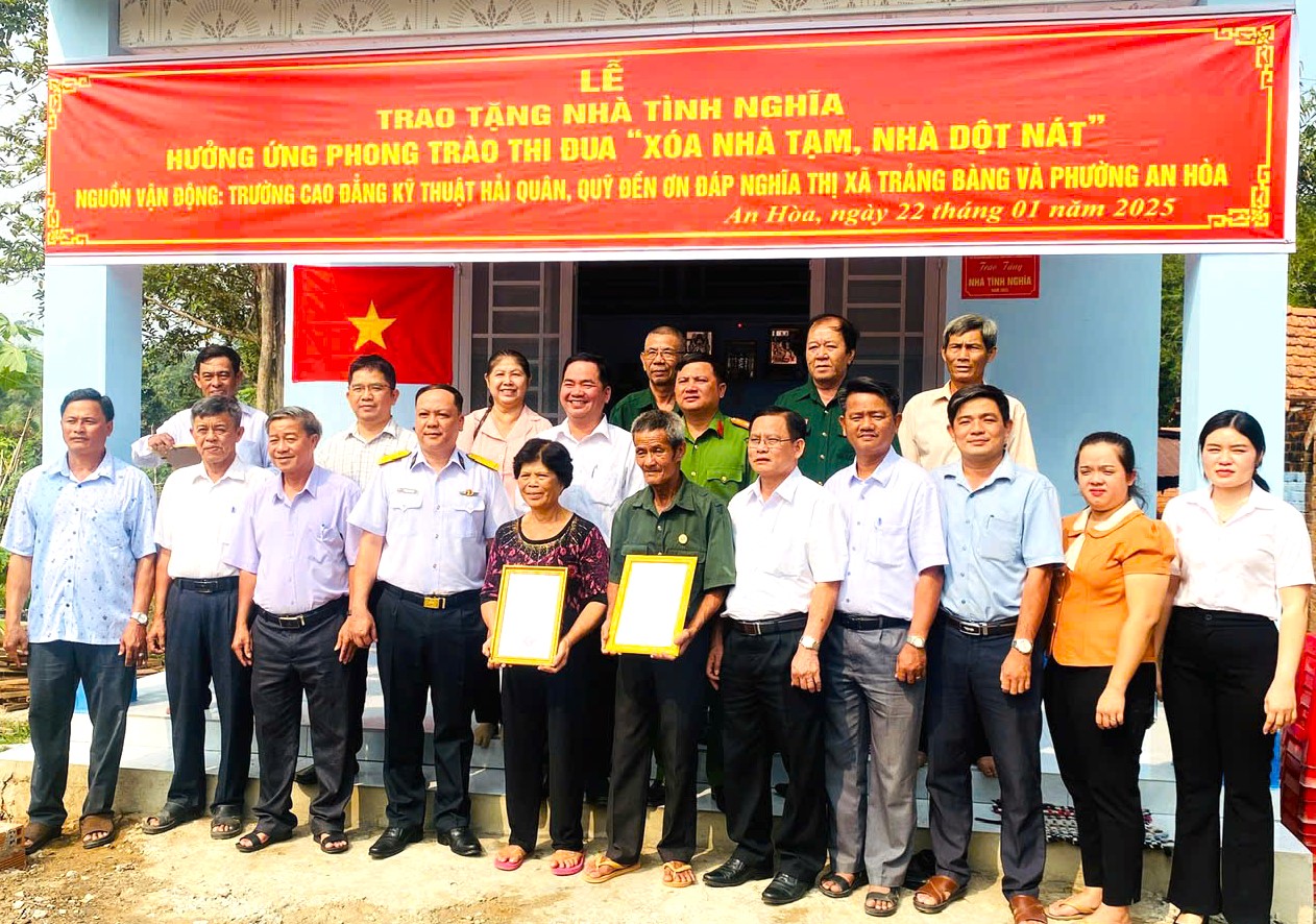 Ngày 22/1, Trường Cao đẳng Kỹ thuật (CĐKT) Hải quân phối hợp với Ban Tuyên giáo Tỉnh uỷ Tây Ninh cùng cấp uỷ, chính quyền địa phương tổ chức trao tặng nhà tình nghĩa cho gia đình bà Trần Thị Phiên. Trung tá Phạm Đức Lợi, Phó Chính uỷ nhà trường chủ trì.