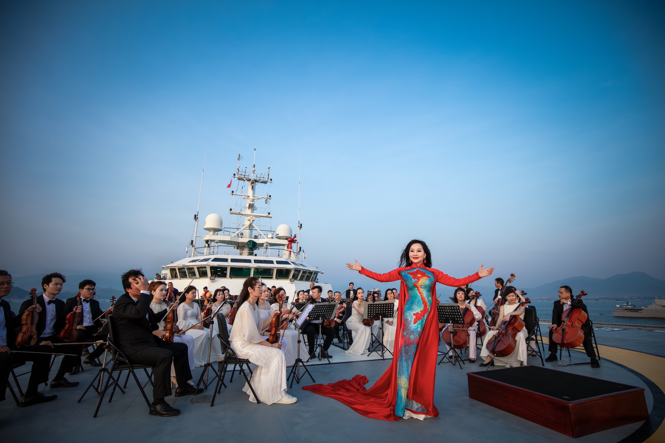 NSƯT Khánh Hòa hát trong sự cổ vũ, hòa ca cùng bộ đội Hải quân. Ảnh: Báo Quân đội
