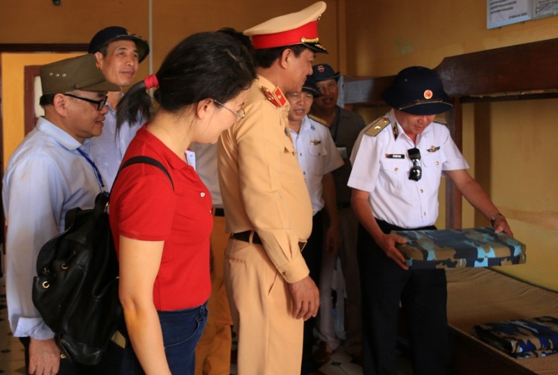 Các đại biểu thăm phòng nghỉ của cán bộ, chiến sĩ đảo Tốc Tan