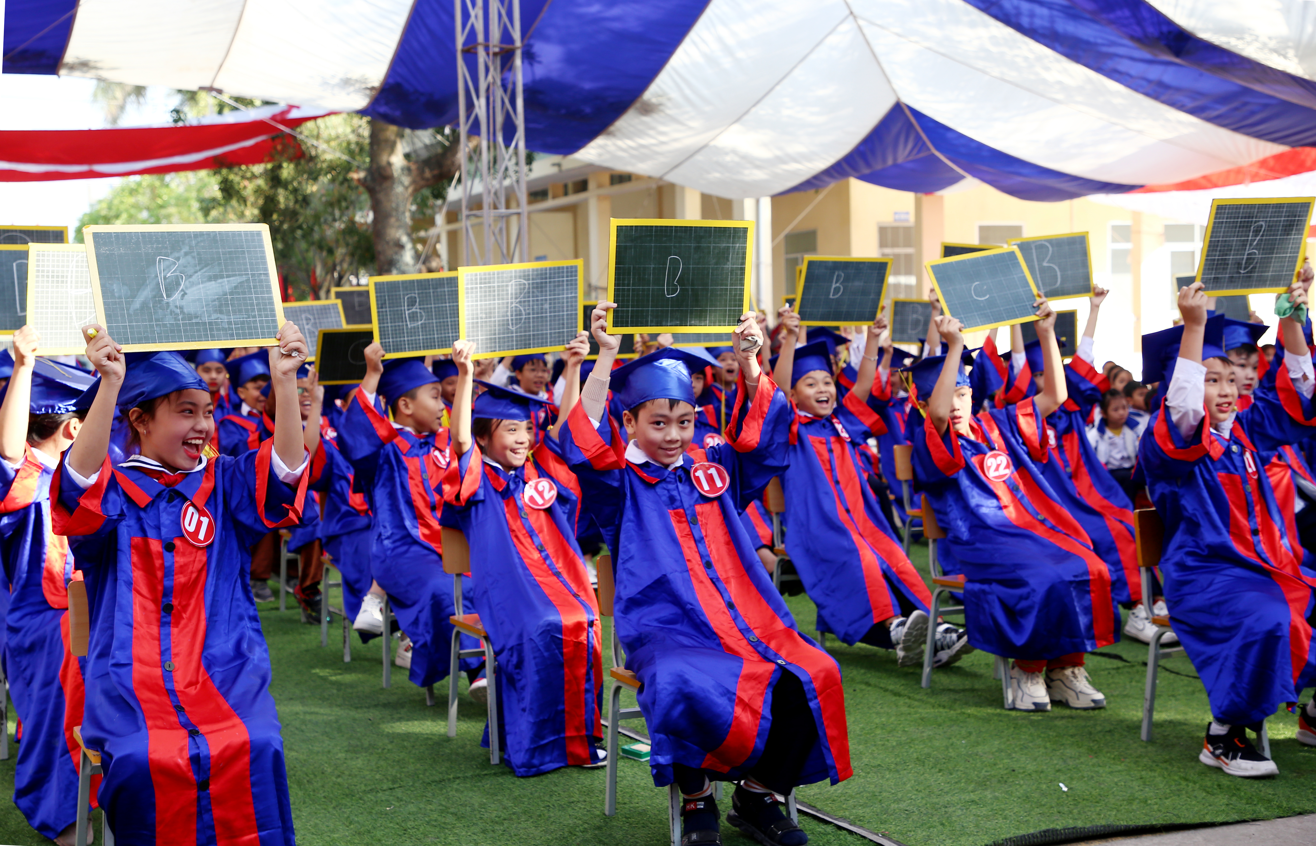 Tiết mục biểu diễn văn nghệ của học sinh khối lớp 1 “Cháu yêu chú bộ đội Hải quân”