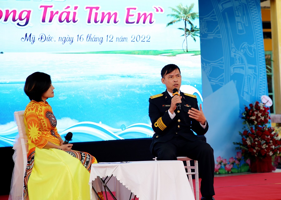 Phần giao lưu giữa các đại biểu, giáo viên, học sinh với đại diện Lữ đoàn 679, Vùng 1 Hải quân